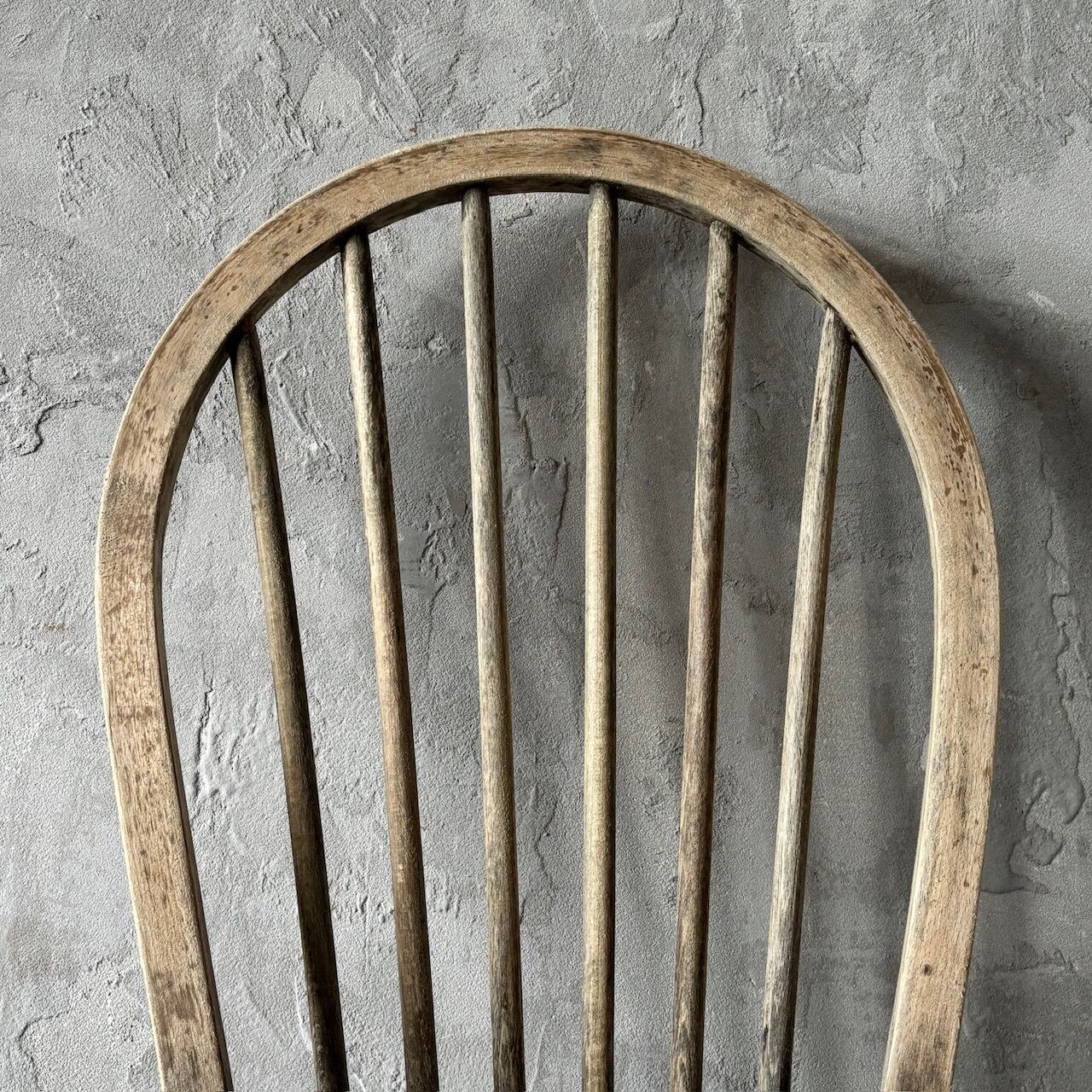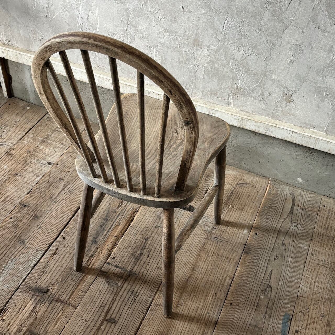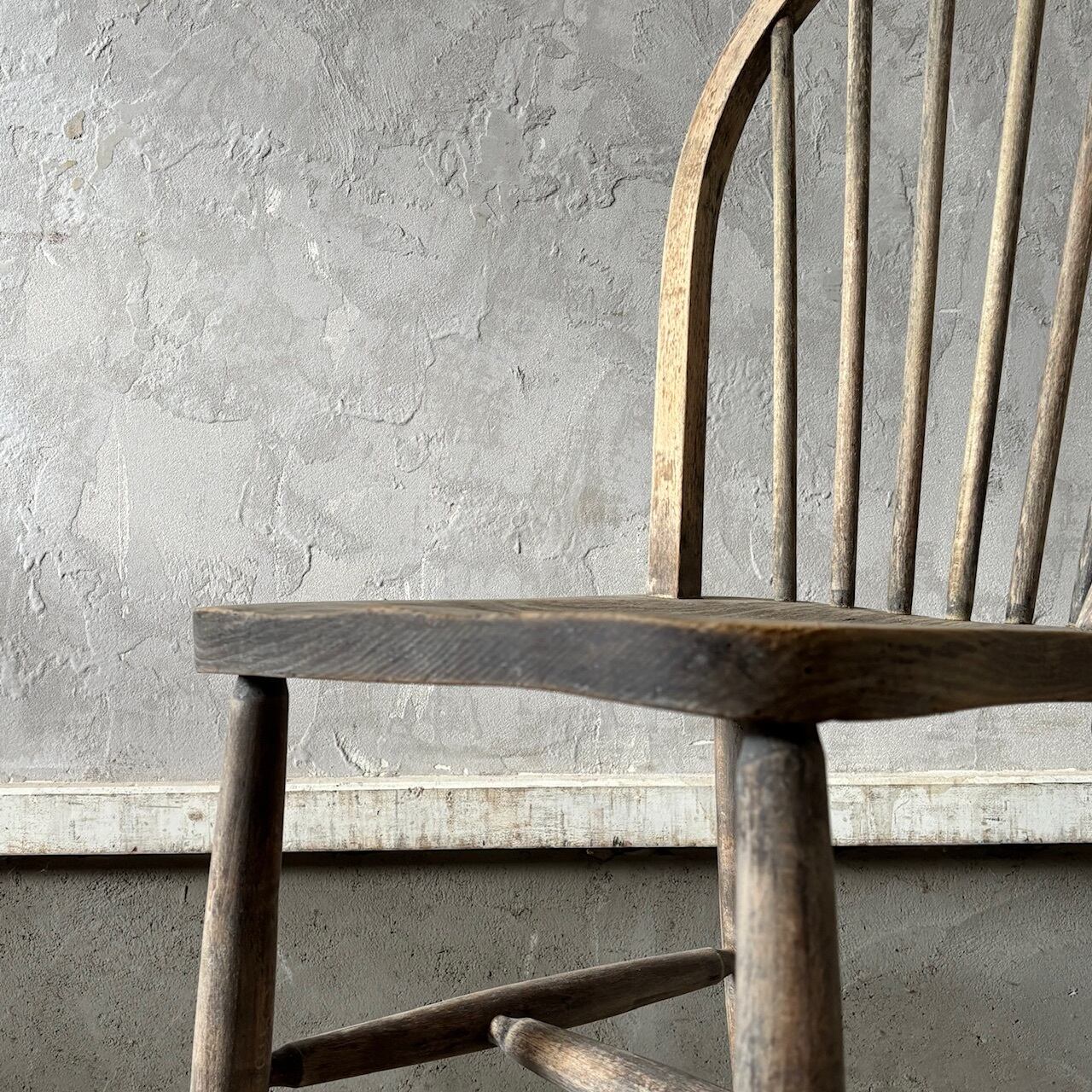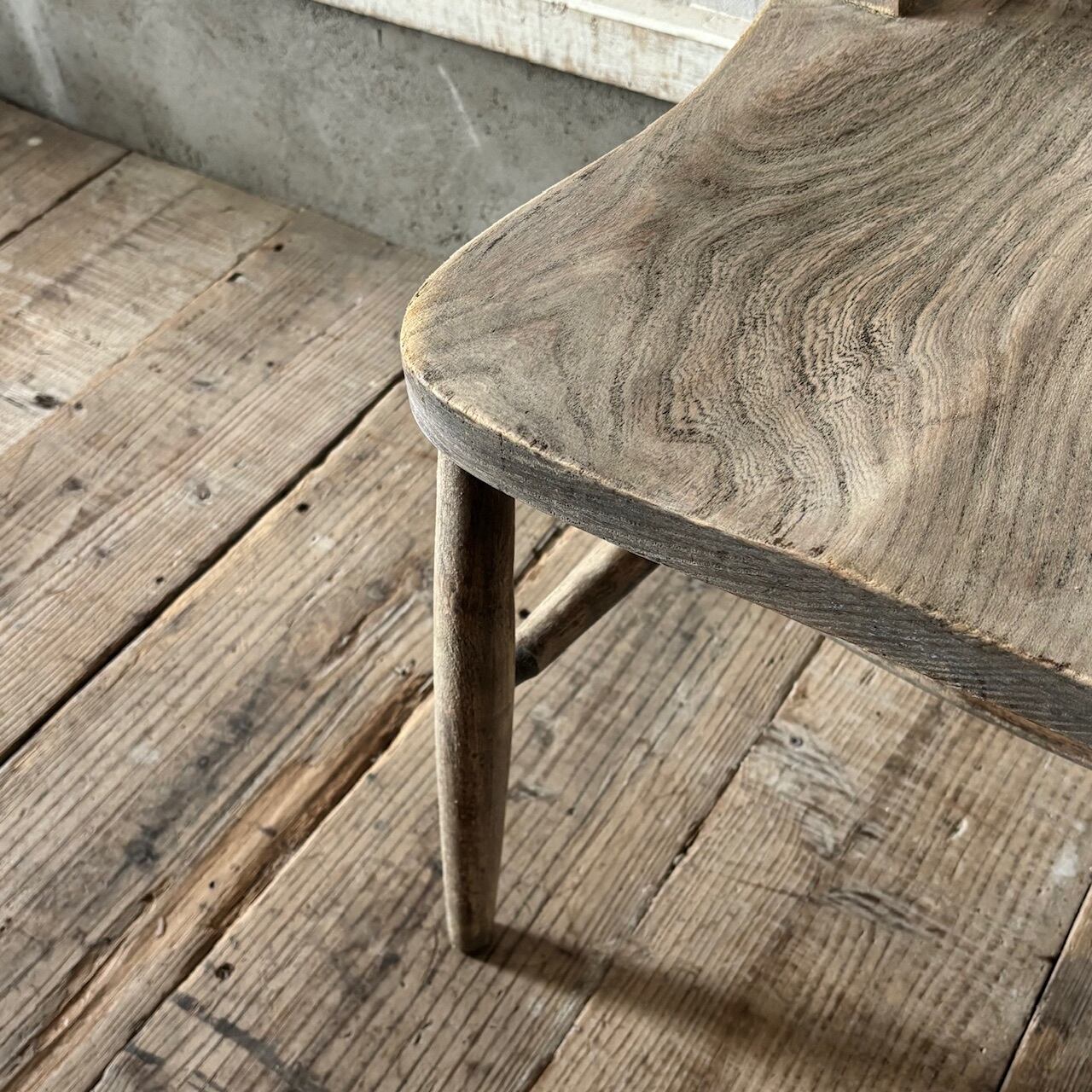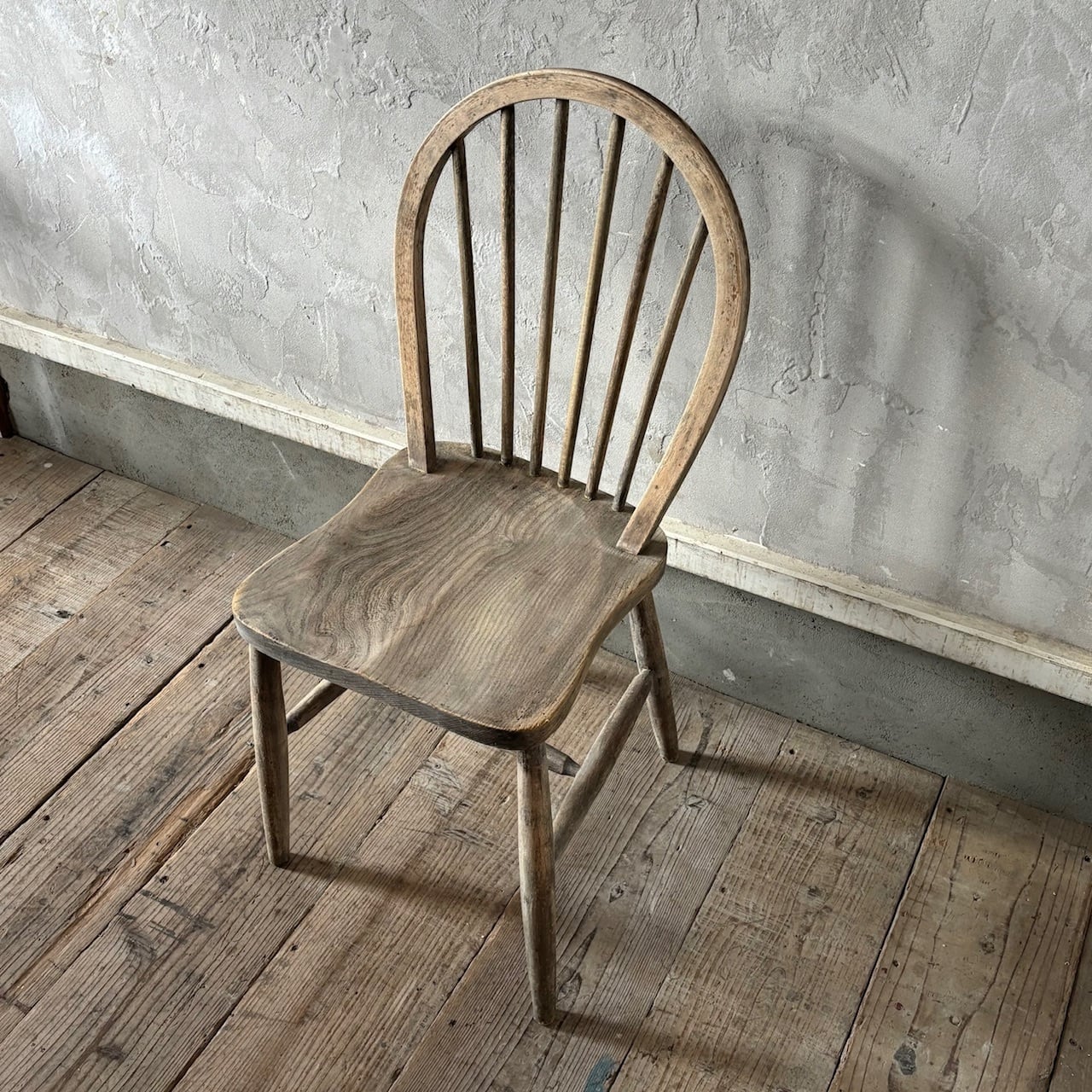 薄い色合いと背もたれの曲線が柔らかな印象のボウバックチェア。少し歪んだ形や使い込まれてついた傷や色むらなど味わいのある表情が魅力的です。座面はお尻の形に合わせて窪ませてあり良い座り心地です。高さ調整の脚のカットは可能です。