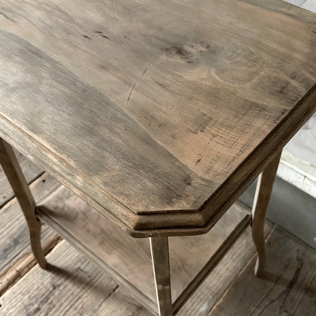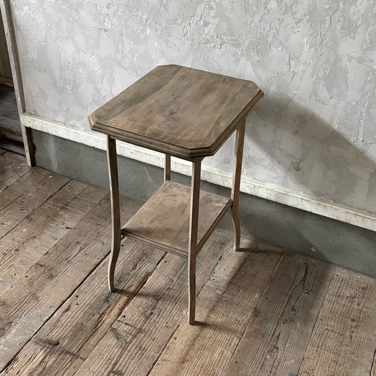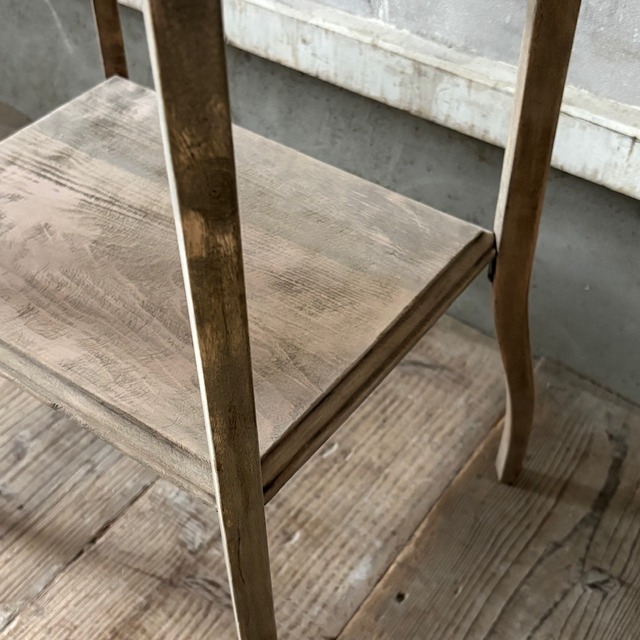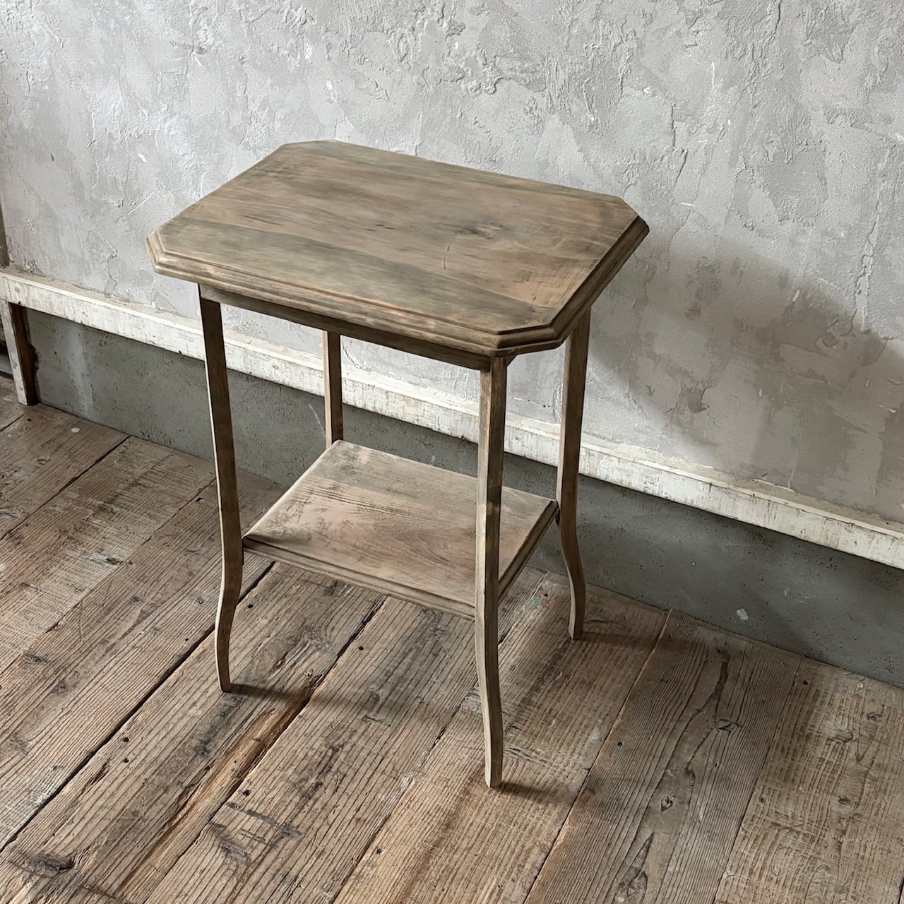 味わい深い木の表情が良い雰囲気のサイドテーブル。脚先に向かって少しカーブした脚や天板の形が魅力的で、シンプルなデザインなので空間に合わせやすいです。下部には本などを置ける位の棚板がついています。椅子と合わせてお部屋の片隅でのちょっとしたテーブルとして、ベッドサイドテーブルやディスプレイテーブルとしても使えます。