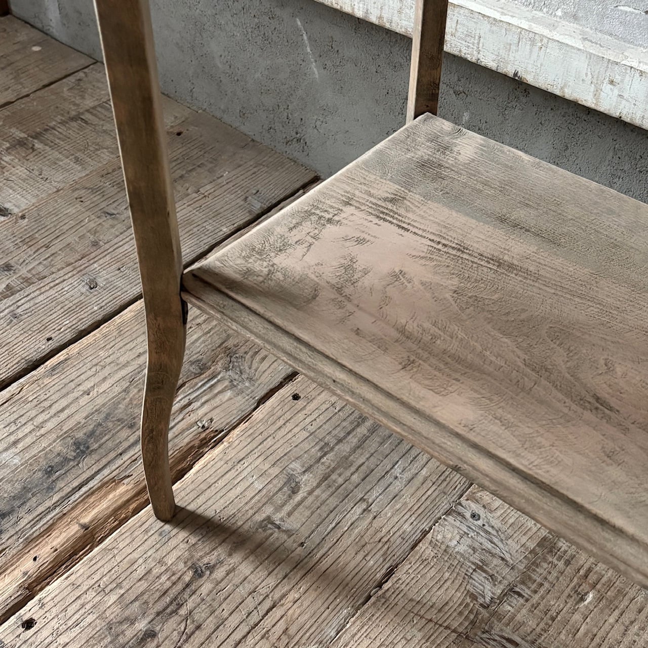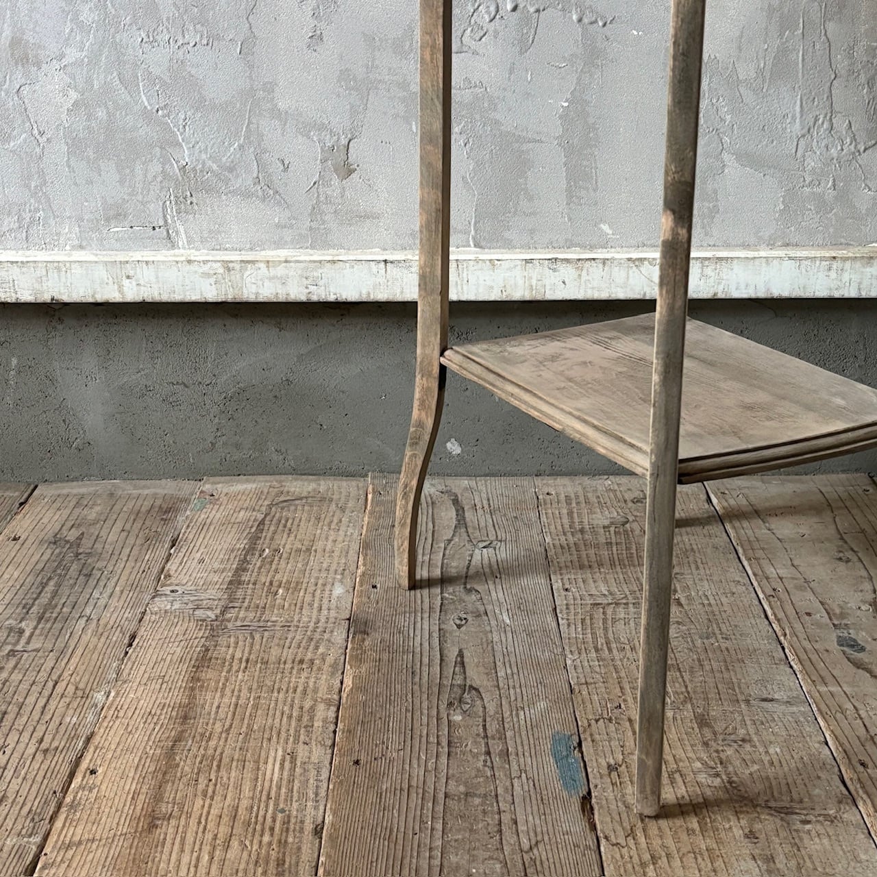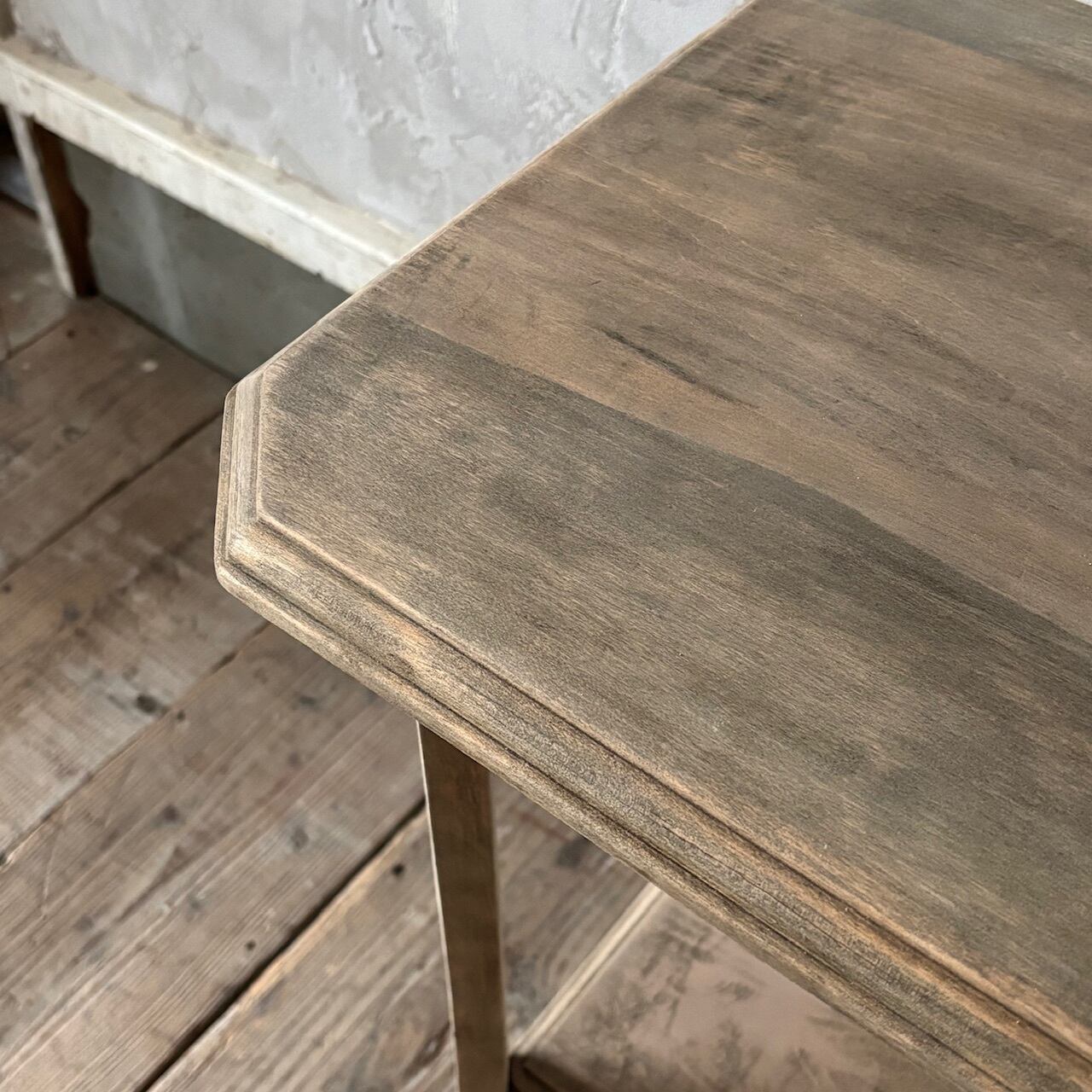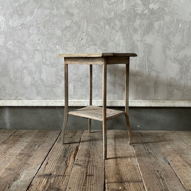 味わい深い木の表情が良い雰囲気のサイドテーブル。脚先に向かって少しカーブした脚や天板の形が魅力的で、シンプルなデザインなので空間に合わせやすいです。下部には本などを置ける位の棚板がついています。椅子と合わせてお部屋の片隅でのちょっとしたテーブルとして、ベッドサイドテーブルやディスプレイテーブルとしても使えます。