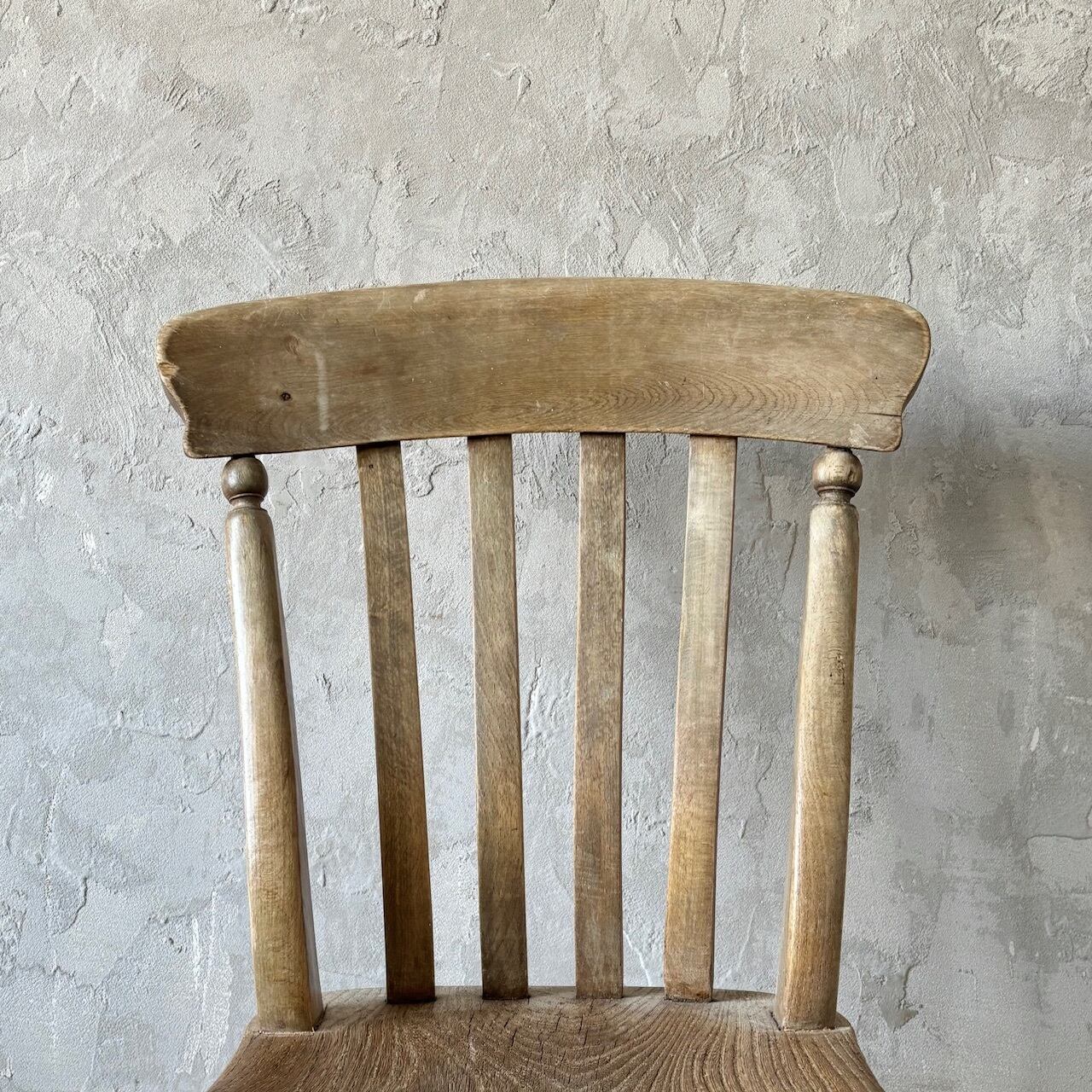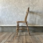 クラシカルなデザインのチェア。重さのあるしっかりとしたつくりで、くぼんだ座面と背中に添うようにカーブした背面が良い座り心地です。木目の表情、使い込まれてついた傷や経年で歪んだ形など古いものならではの味わいが魅力的です。高さ調整の脚のカットは可能です。