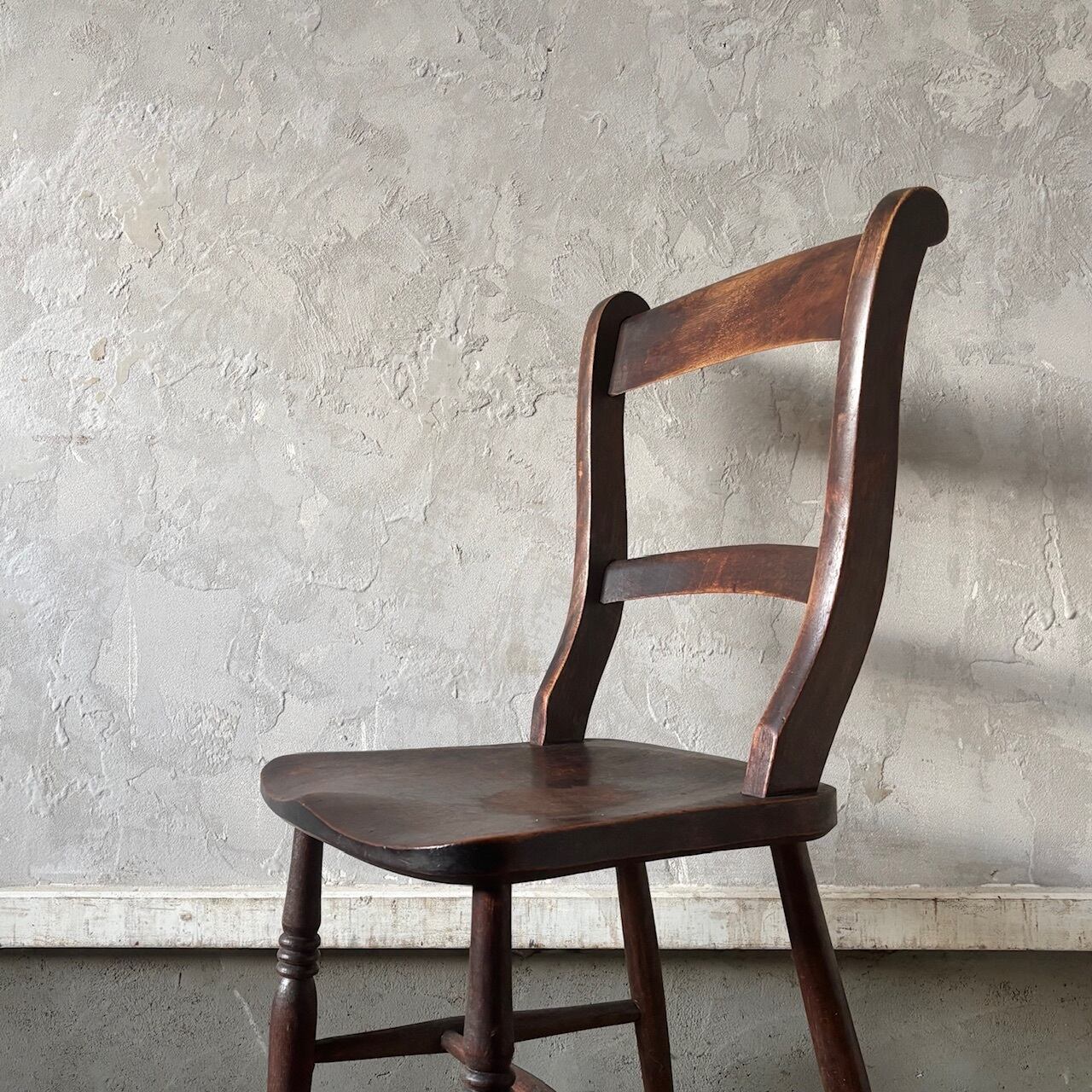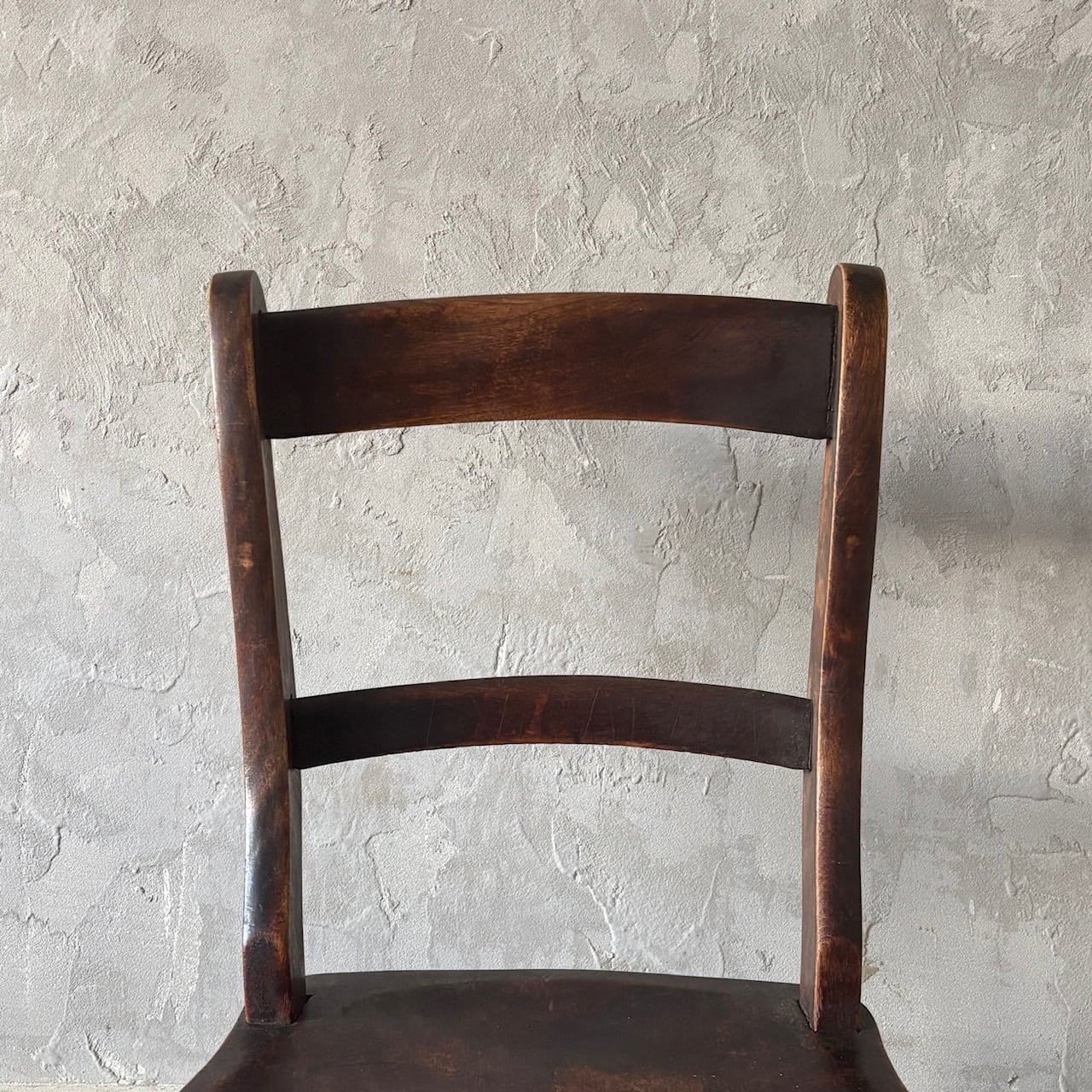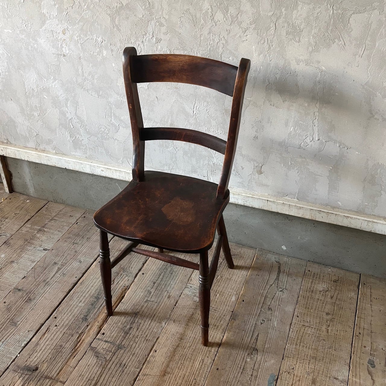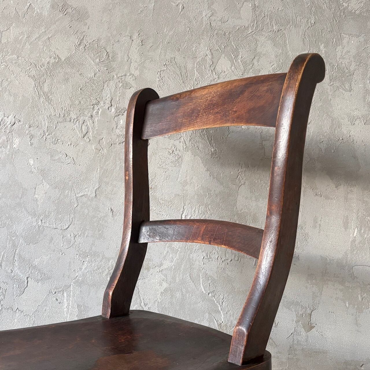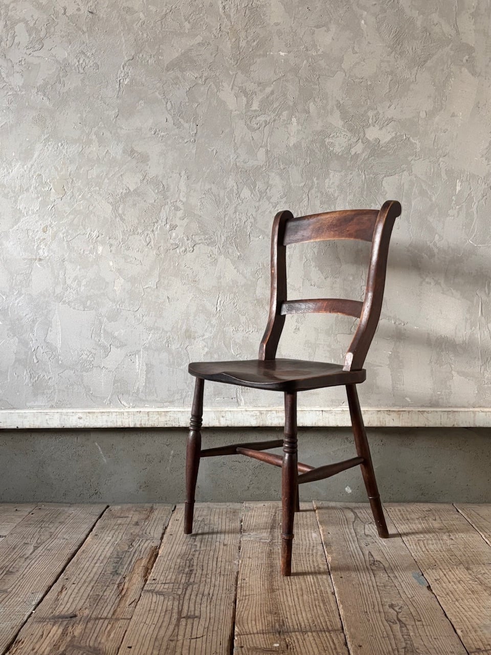 シンプルな形の良い佇まいのチェア。細めの脚が良く、時の経過を感じさせる色合いや使い込まれてついた傷など古いものならではの味わいが魅力的です。くぼんだ座面と背中に沿うようにカーブした背面が良い座り心地です。高さ調整の脚のカットは可能です。