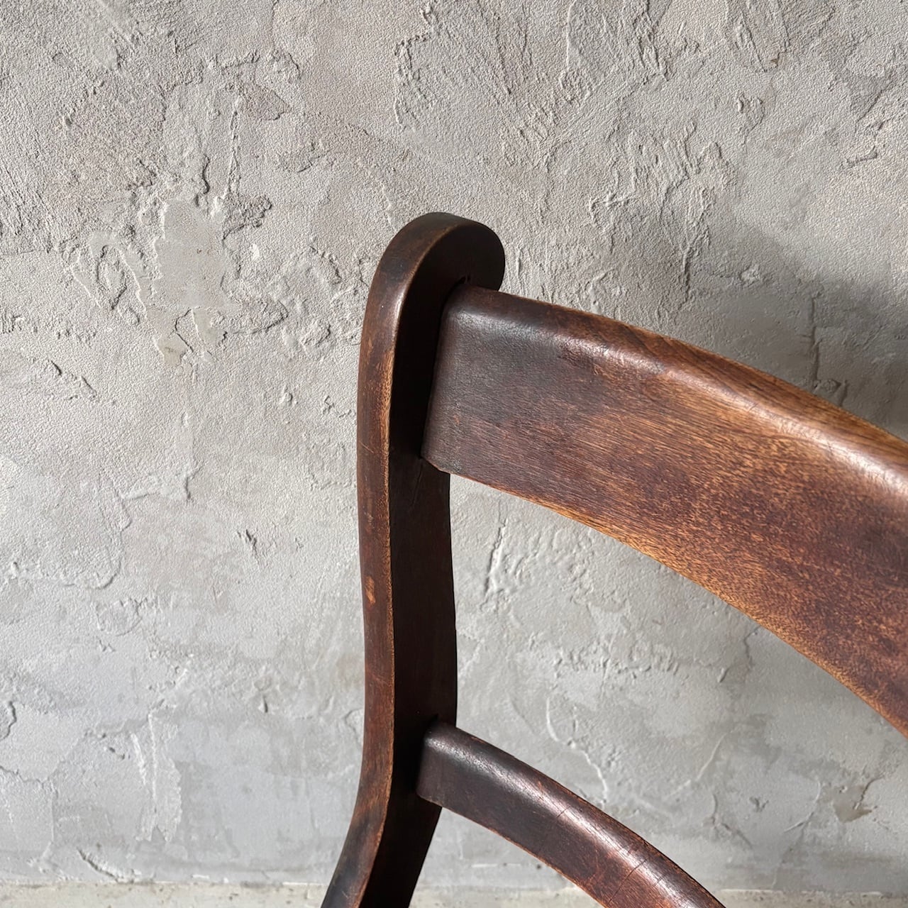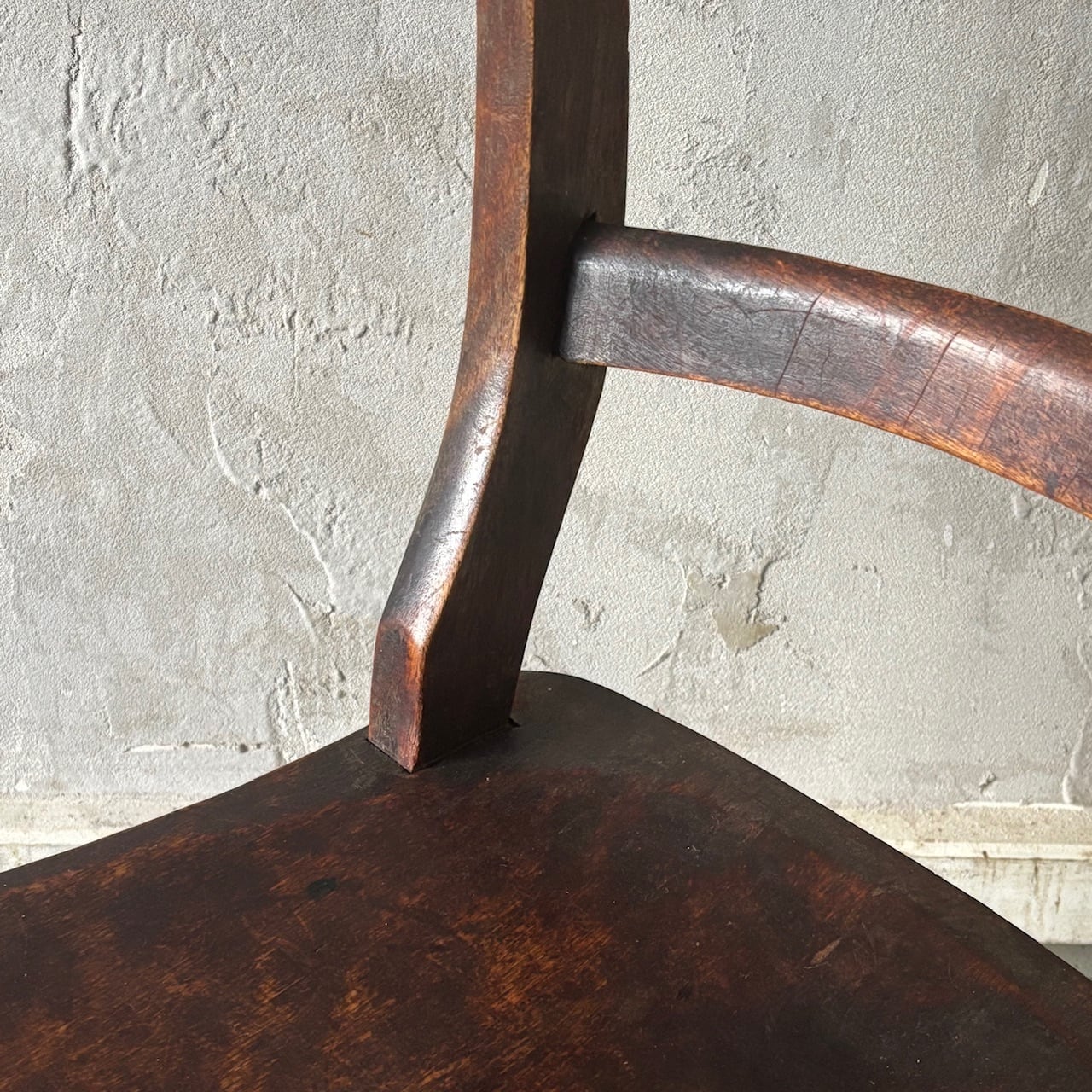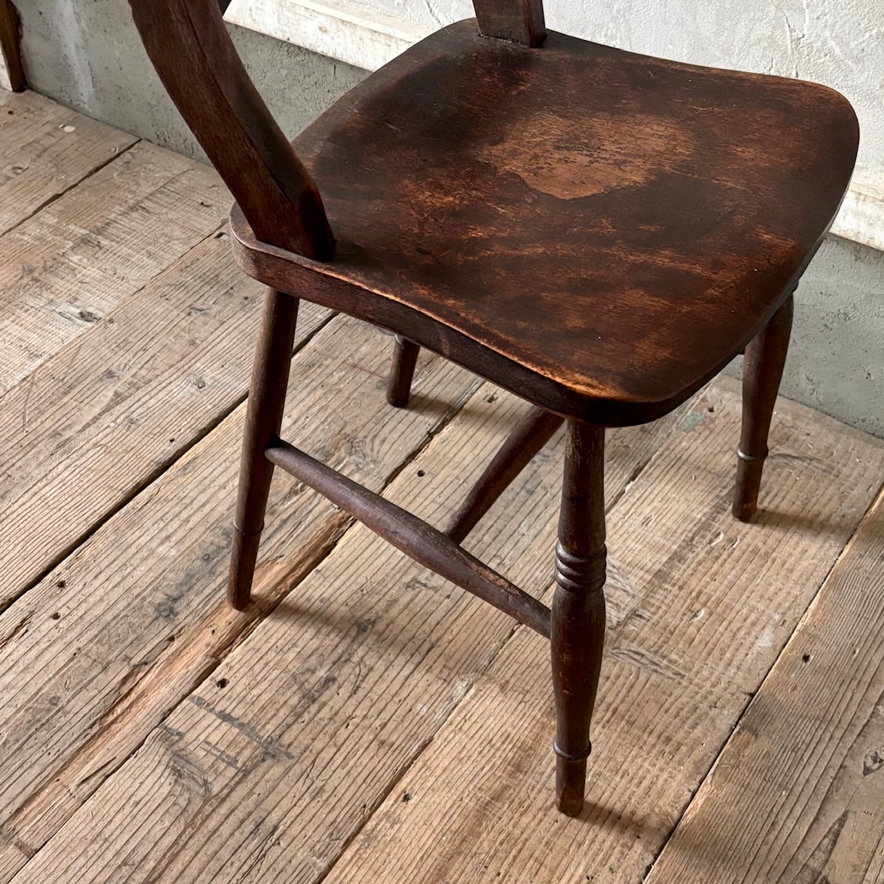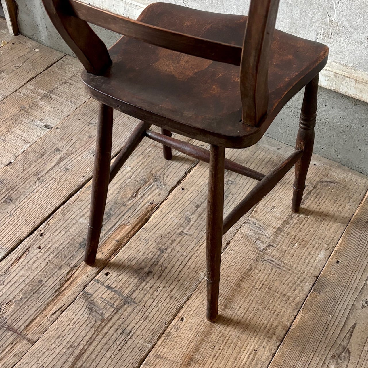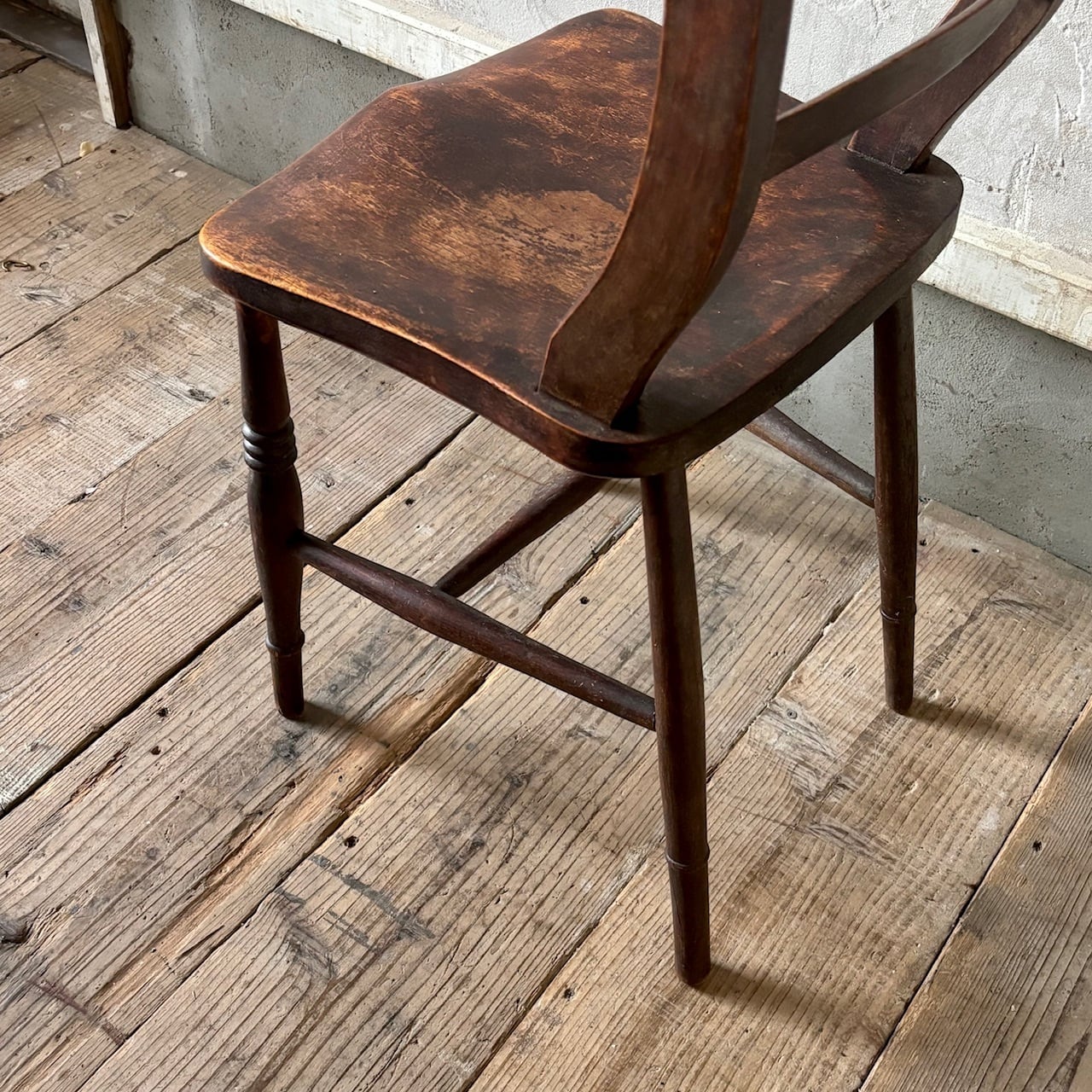 シンプルな形の良い佇まいのチェア。細めの脚が良く、時の経過を感じさせる色合いや使い込まれてついた傷など古いものならではの味わいが魅力的です。くぼんだ座面と背中に沿うようにカーブした背面が良い座り心地です。高さ調整の脚のカットは可能です。