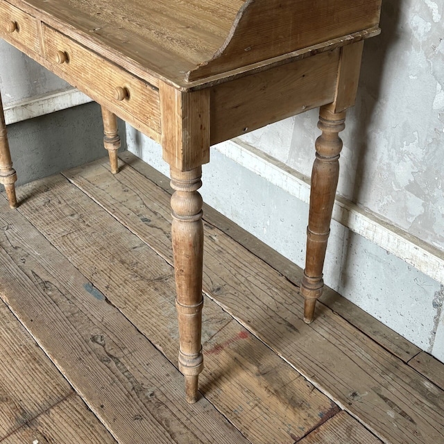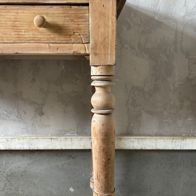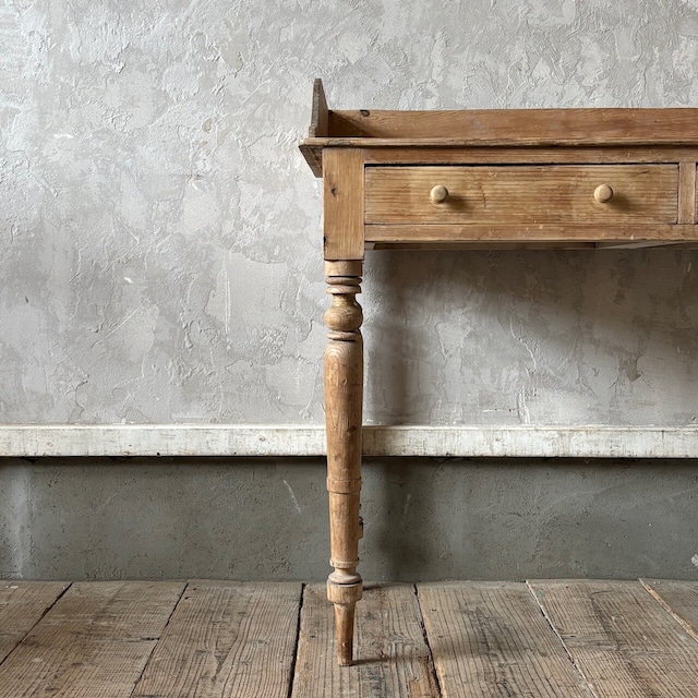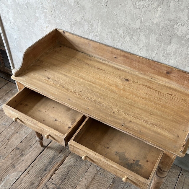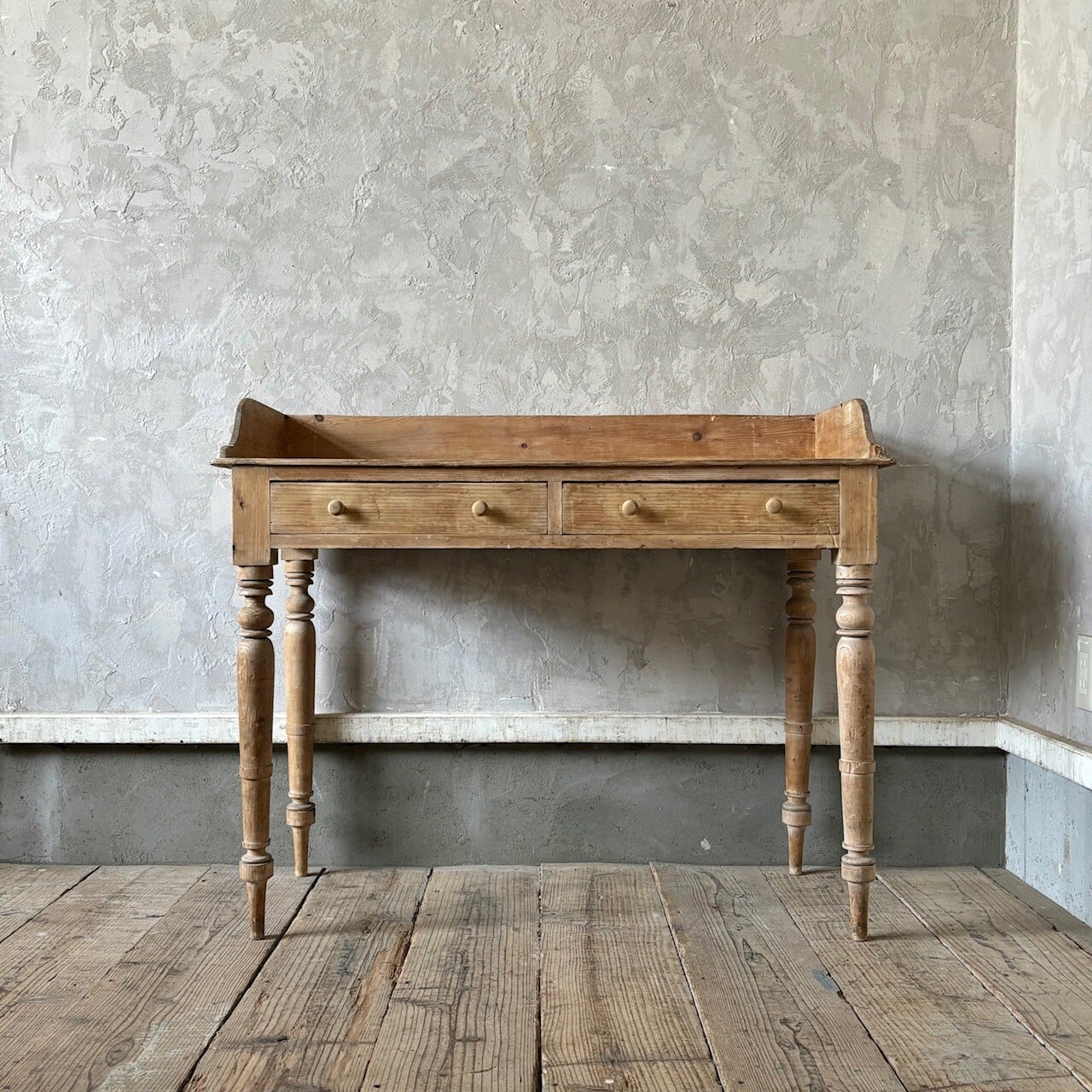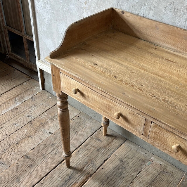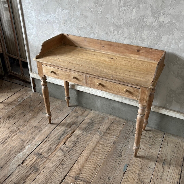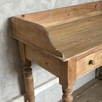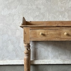 本来は洗面ボウルを置いて洗面台として使われていたウォッシングテーブル。長い年月を経た木の表情が良い雰囲気です。壁際に置いてデスクやテーブルとして使ったり、ディスプレイテーブルにも良さそうです。高さ調整の脚のカットは可能です。
