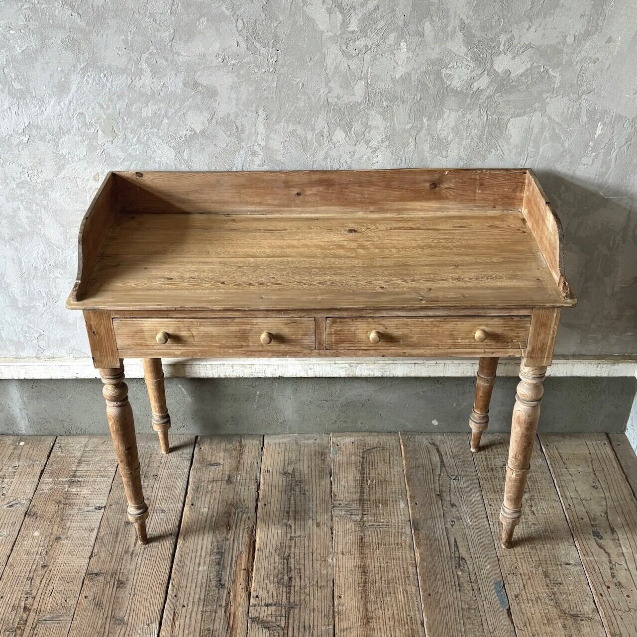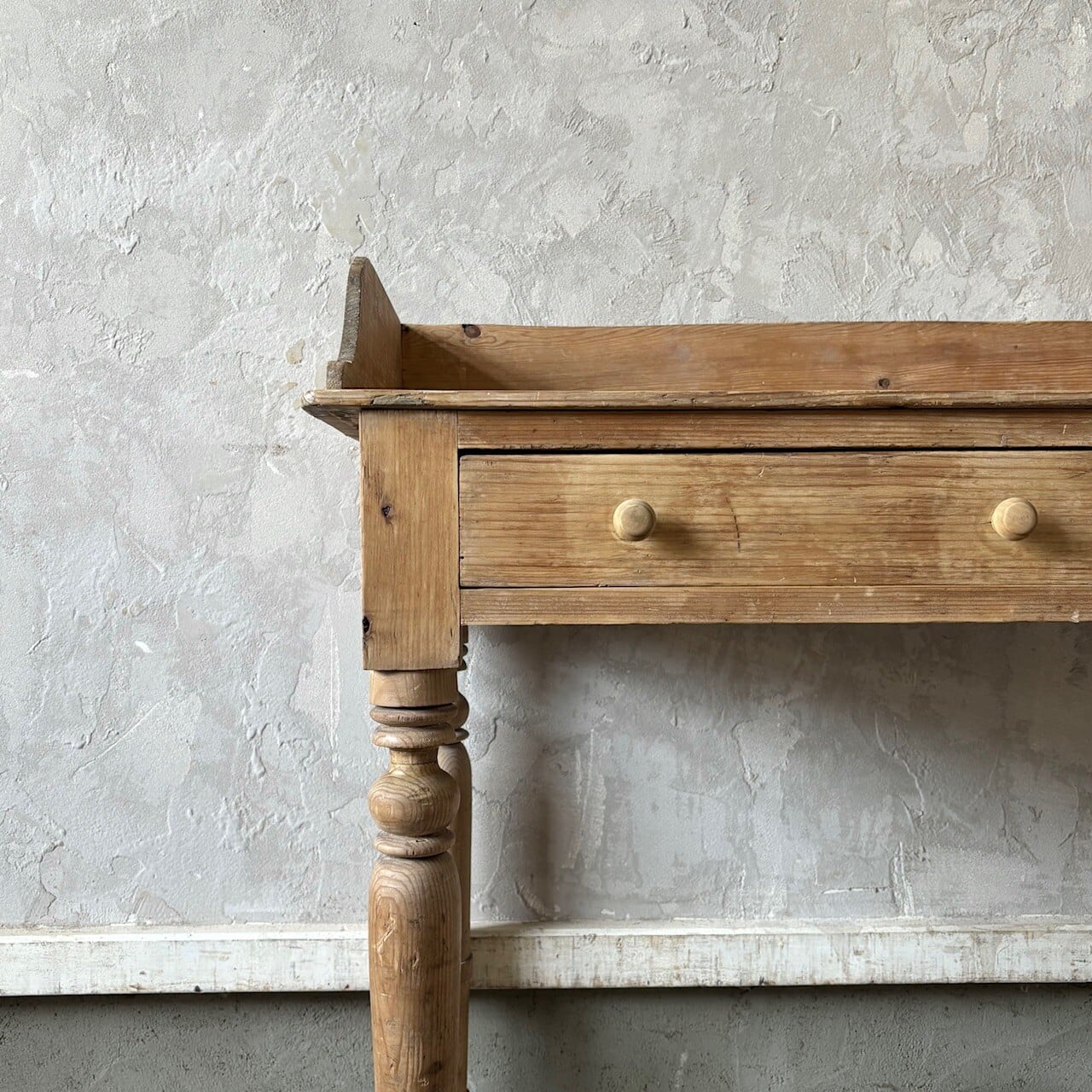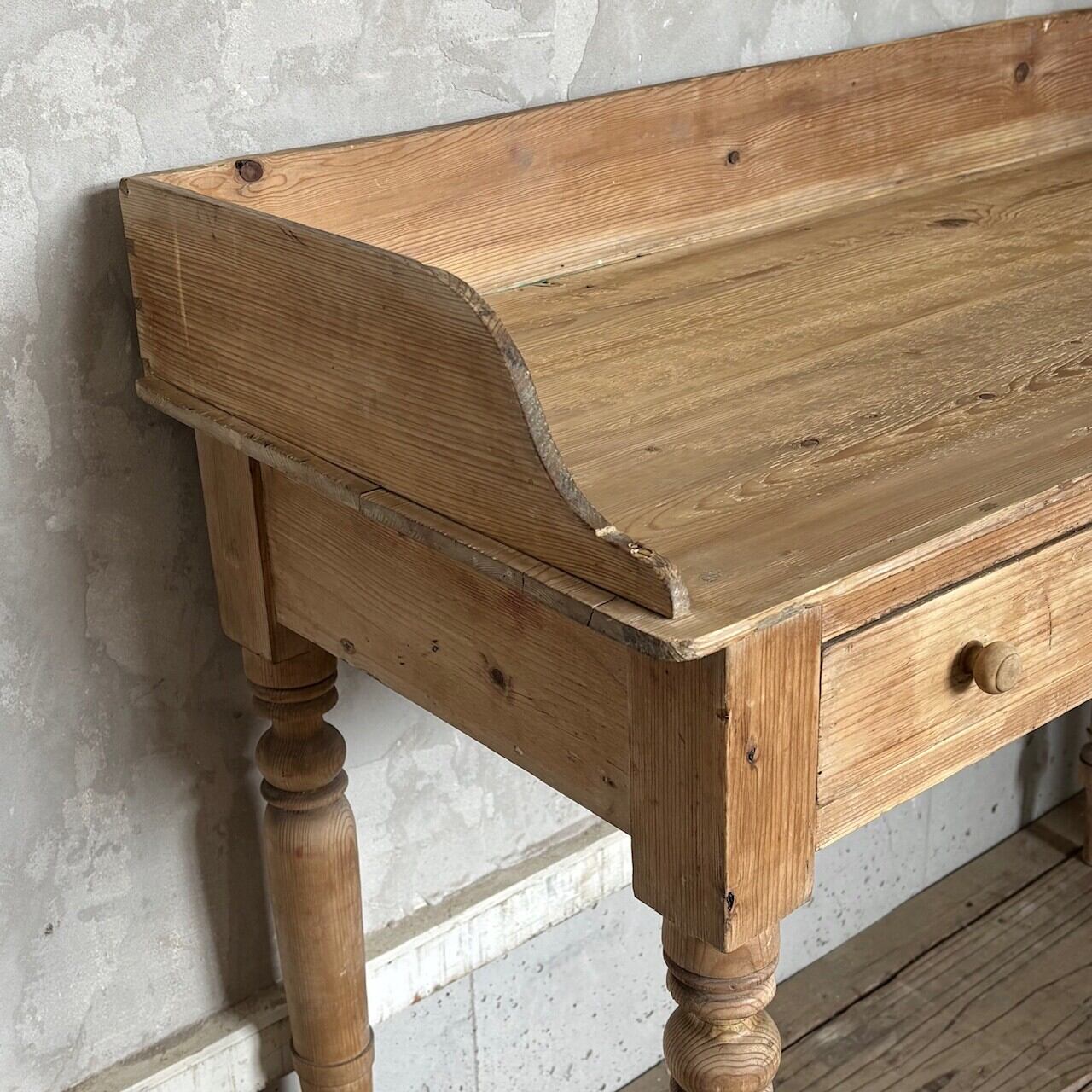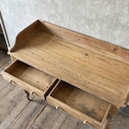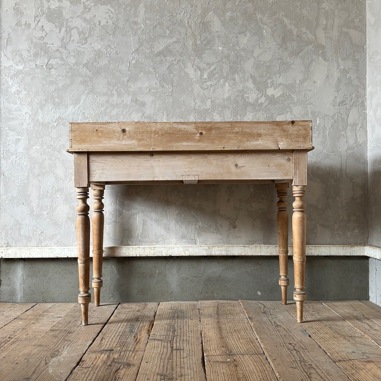 本来は洗面ボウルを置いて洗面台として使われていたウォッシングテーブル。長い年月を経た木の表情が良い雰囲気です。壁際に置いてデスクやテーブルとして使ったり、ディスプレイテーブルにも良さそうです。高さ調整の脚のカットは可能です。