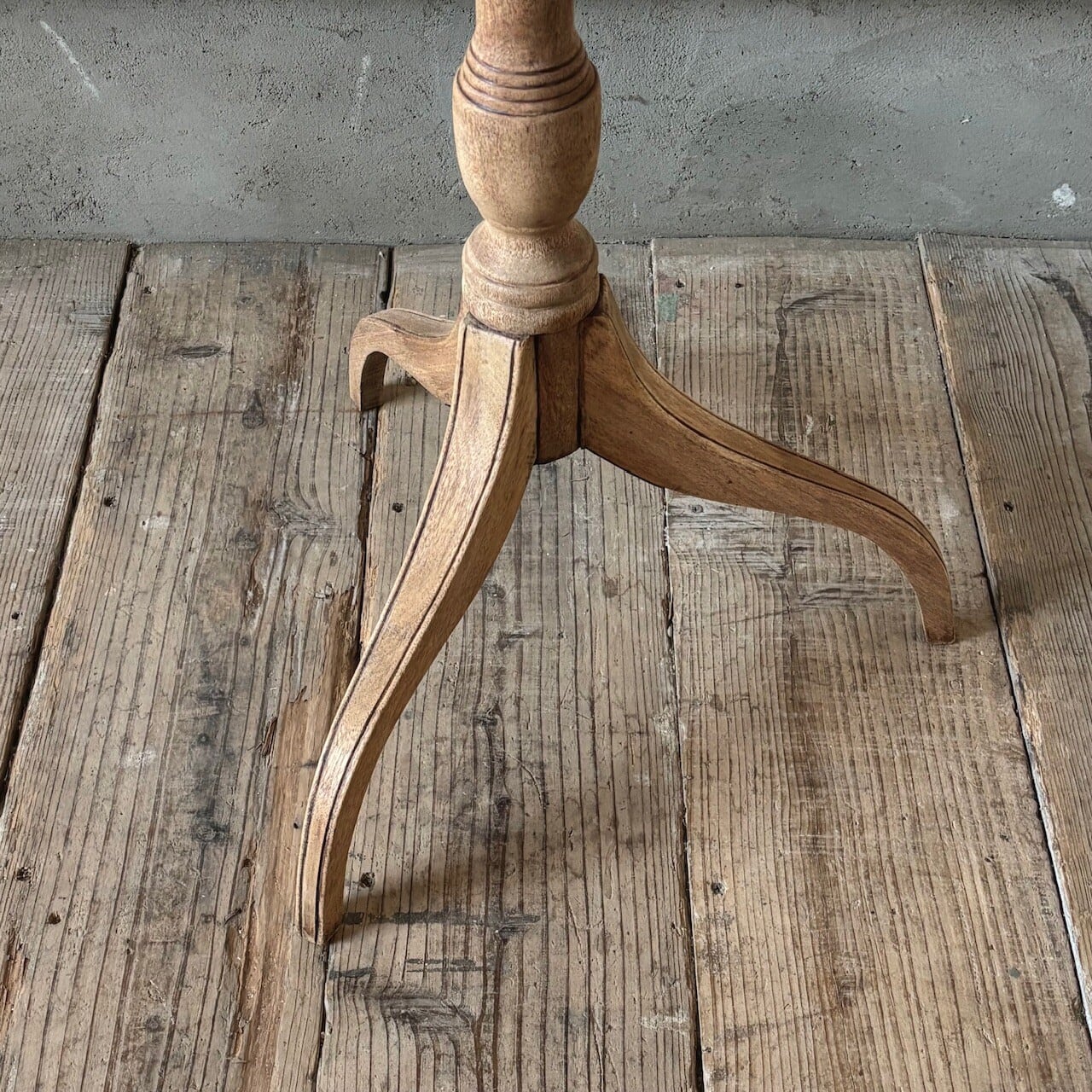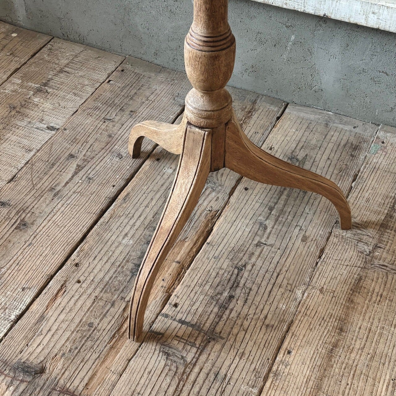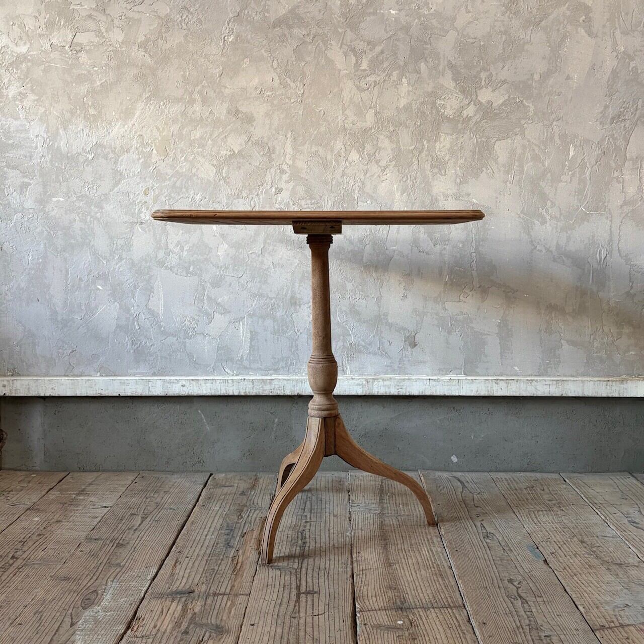 天板がやや広めの三つ脚のサイドテーブル。空間に合わせやすいシンプルな形で、曲線を描く脚部が良い雰囲気です。椅子と合わせてお部屋の片隅でのテーブルとしてやディスプレイテーブルとしてなど様々な用途で使えそうです。