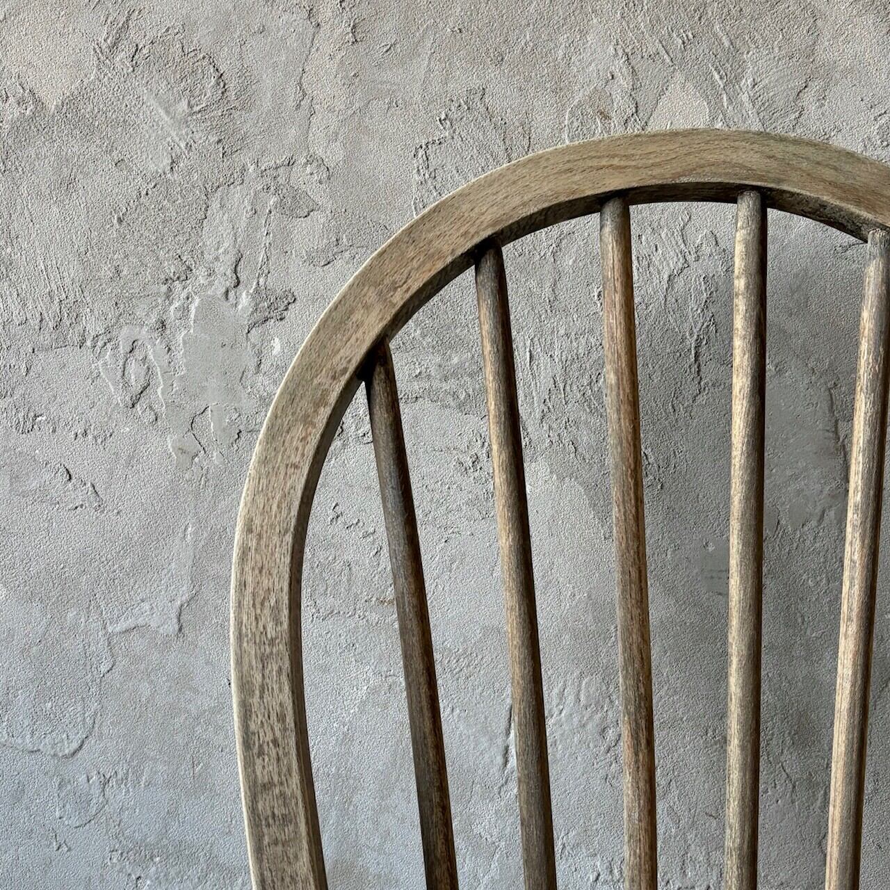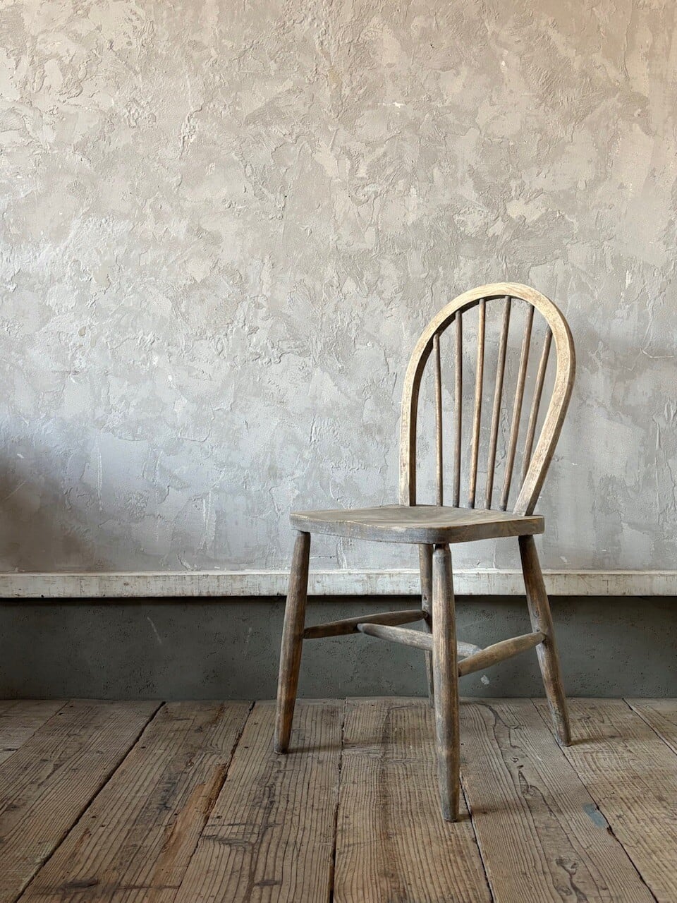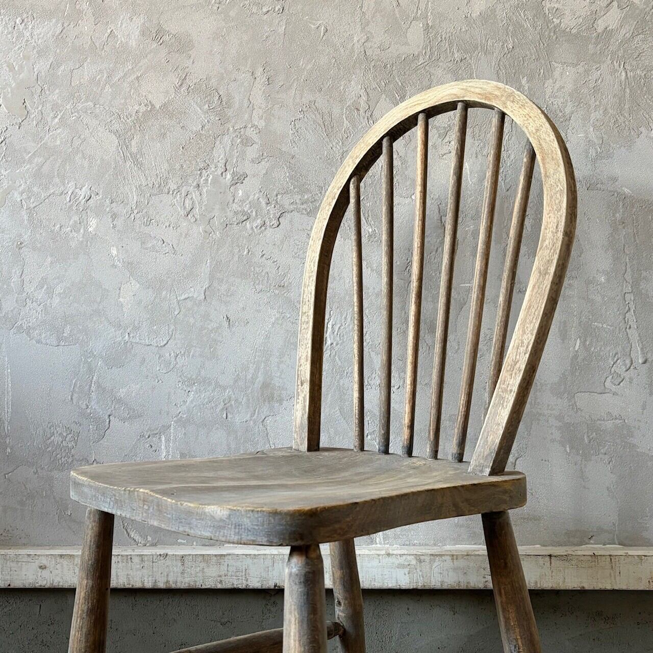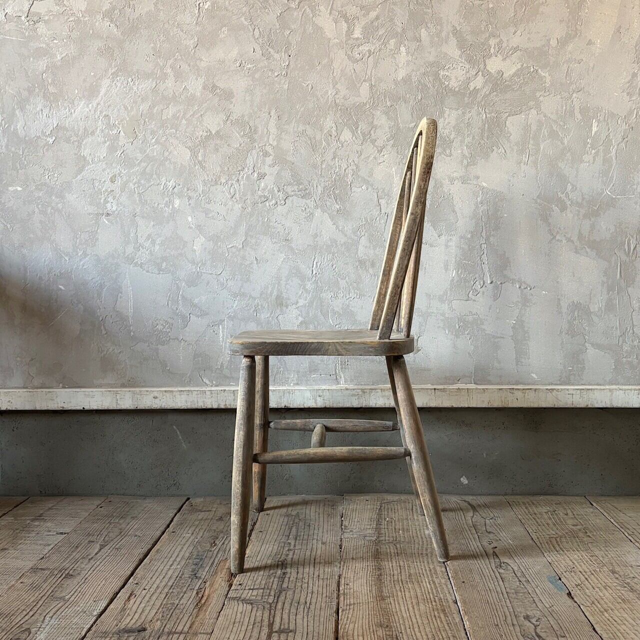 薄い色合いと背もたれの曲線が柔らかな印象のボウバックチェア。経年した木の表情や使い込まれてついた傷や色むらなど味わいのある表情が魅力的です。高さ調整の脚のカットは可能です。