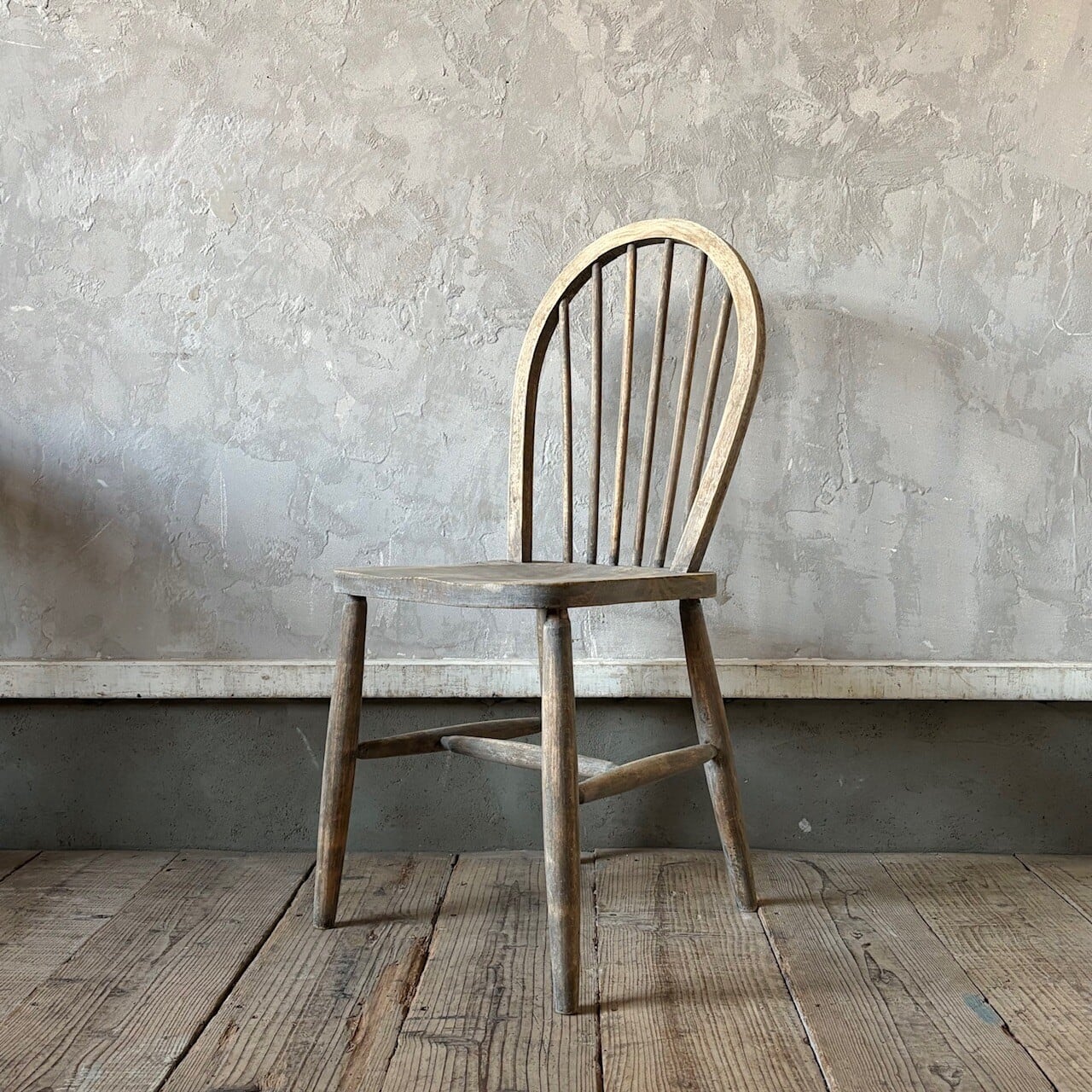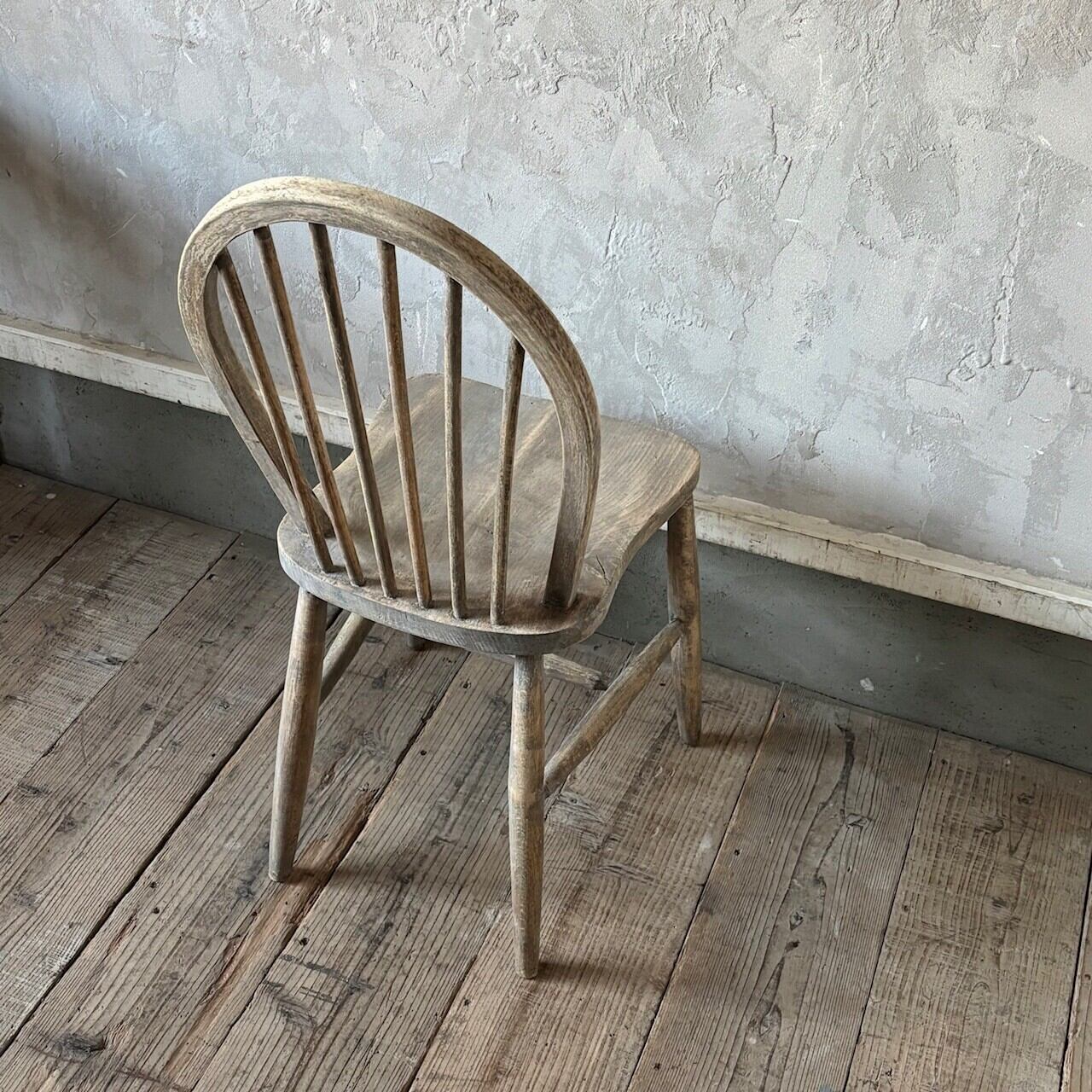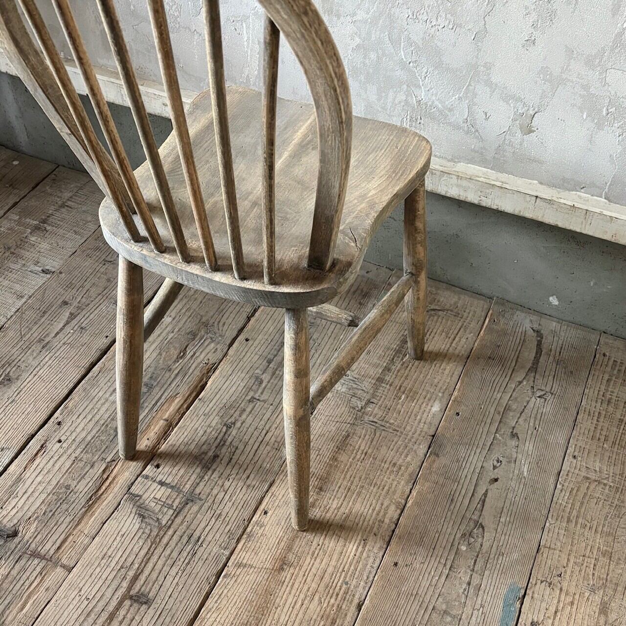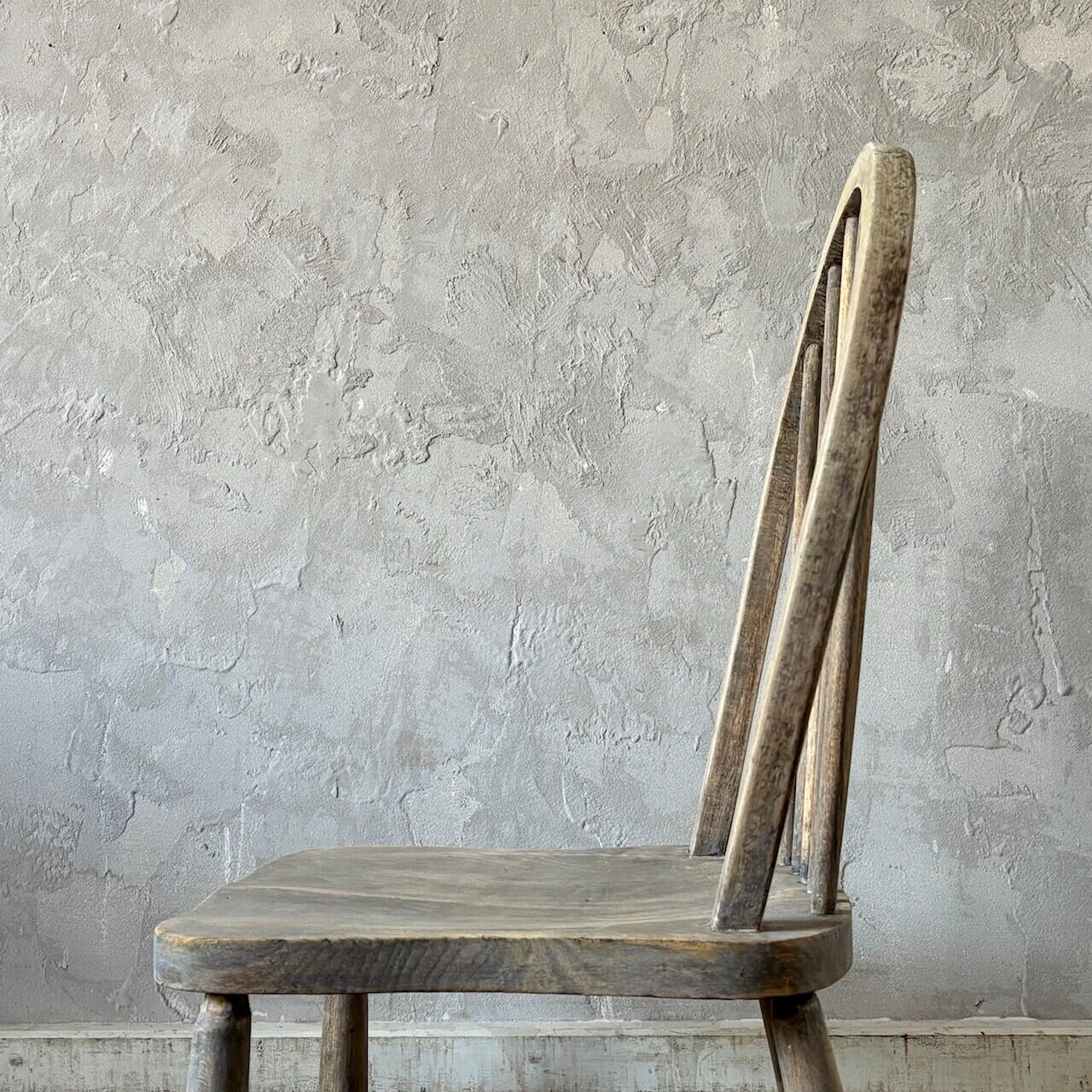 薄い色合いと背もたれの曲線が柔らかな印象のボウバックチェア。経年した木の表情や使い込まれてついた傷や色むらなど味わいのある表情が魅力的です。高さ調整の脚のカットは可能です。