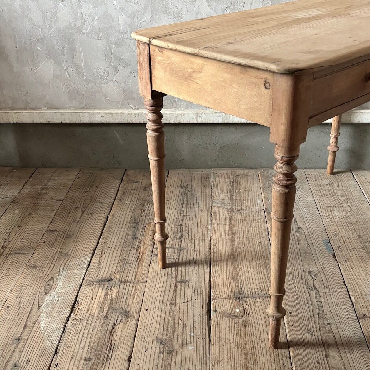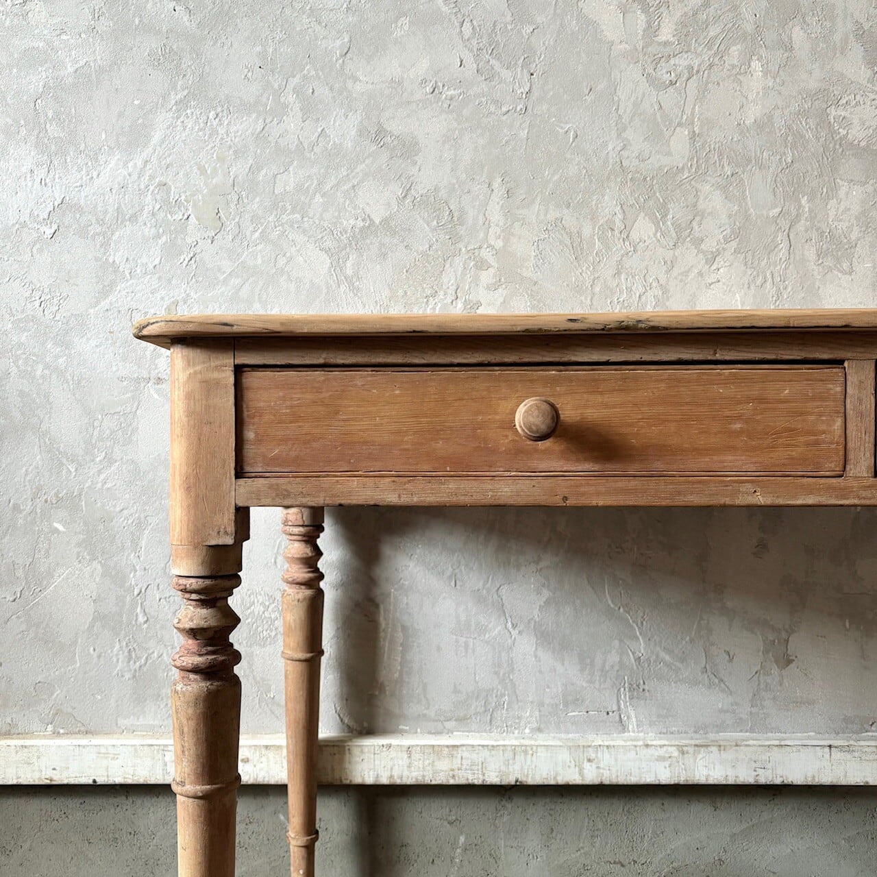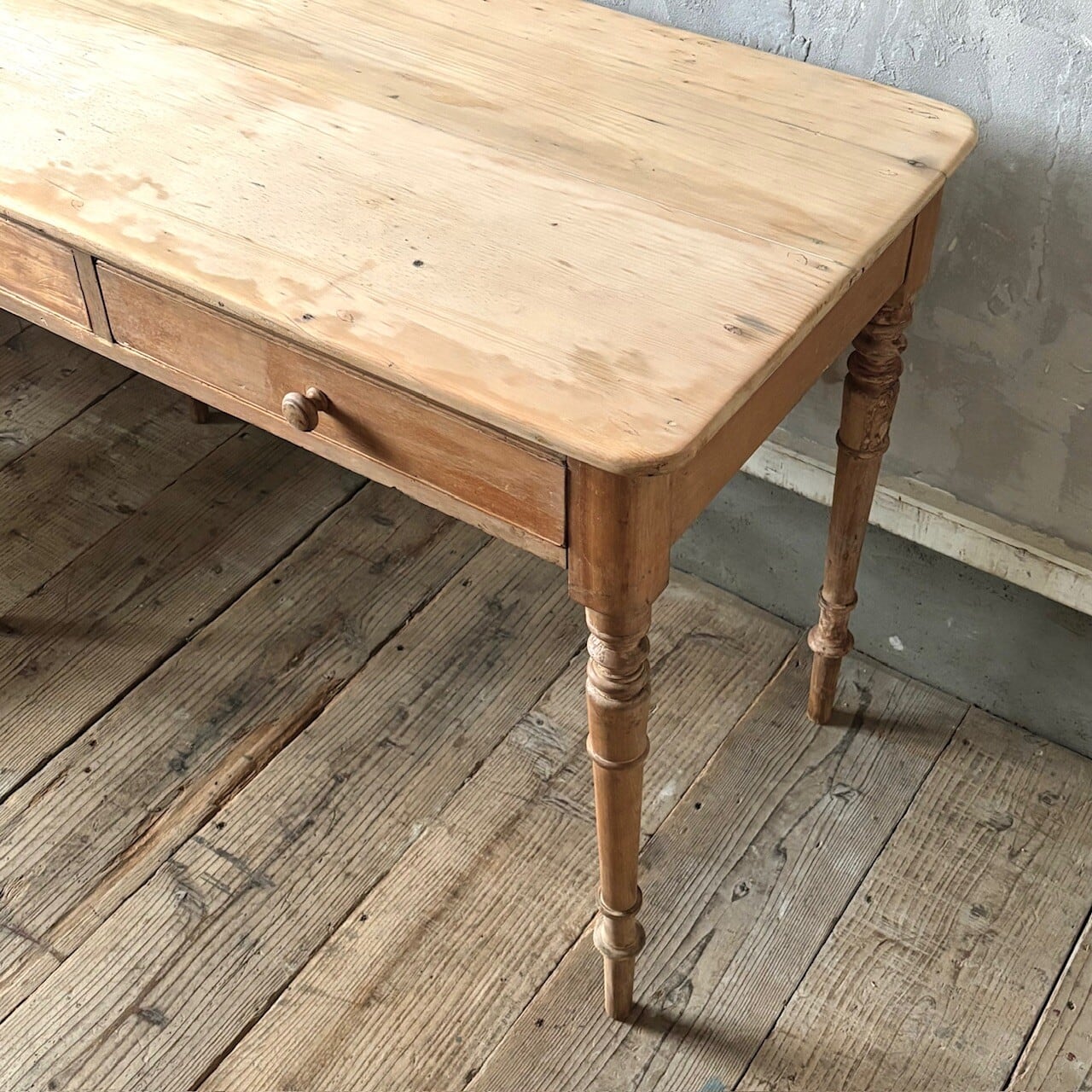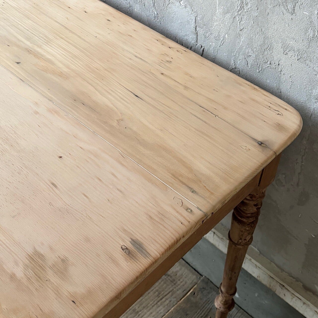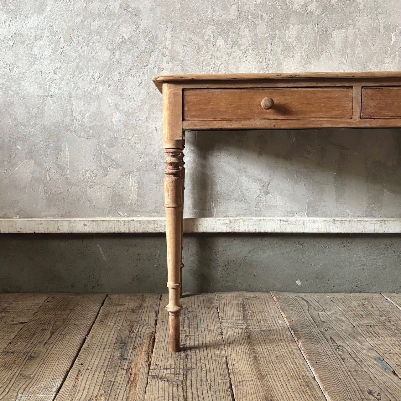 引出し付きのデスク。長い年月を経た味わい深い木の表情が良い雰囲気です。脚部分に補修跡や若干の反りがありますが実用できます。デスクとしてはもちろんテーブルとしてやディスプレイテーブルにも。高さ調整の脚のカットは可能です。