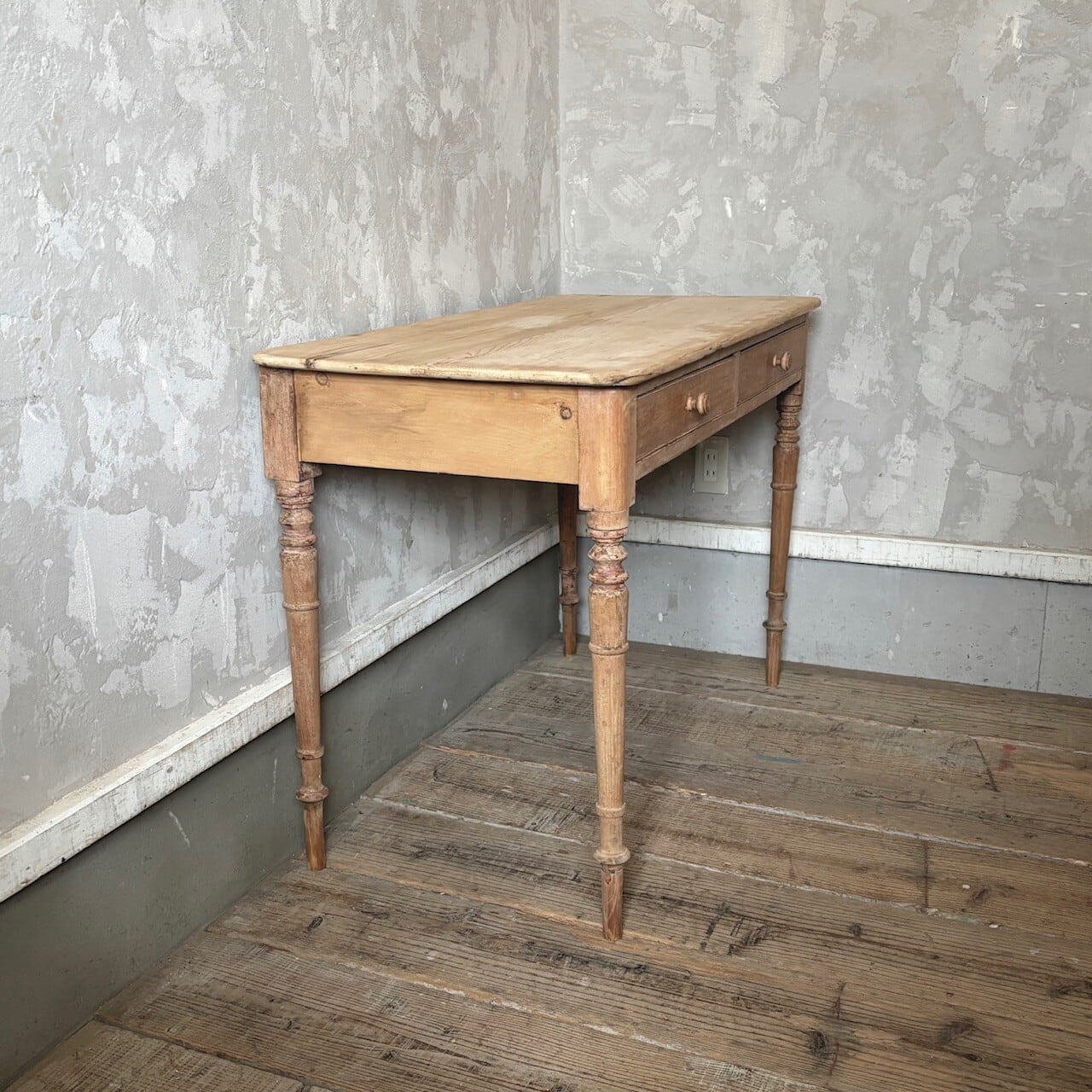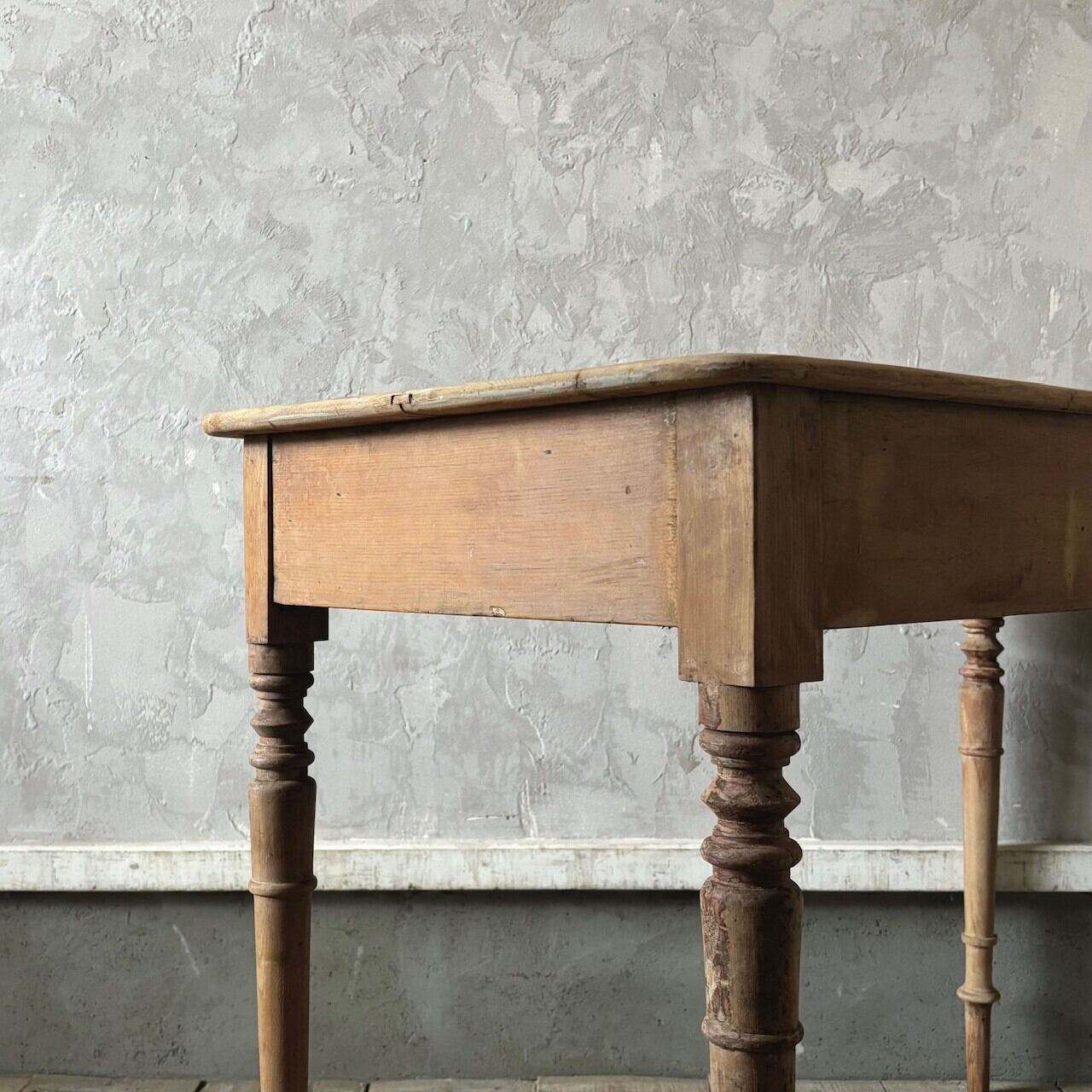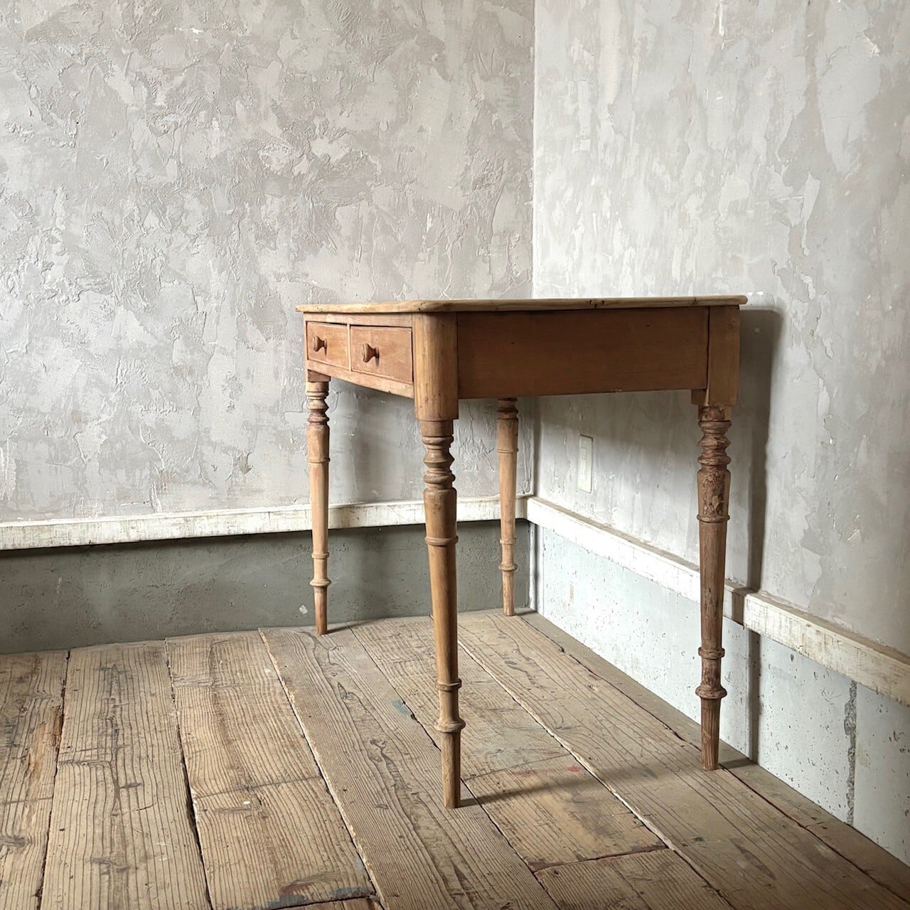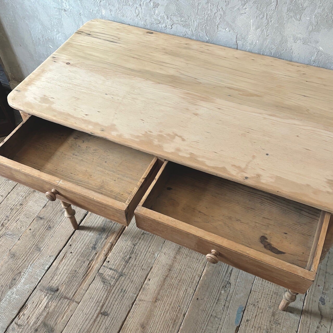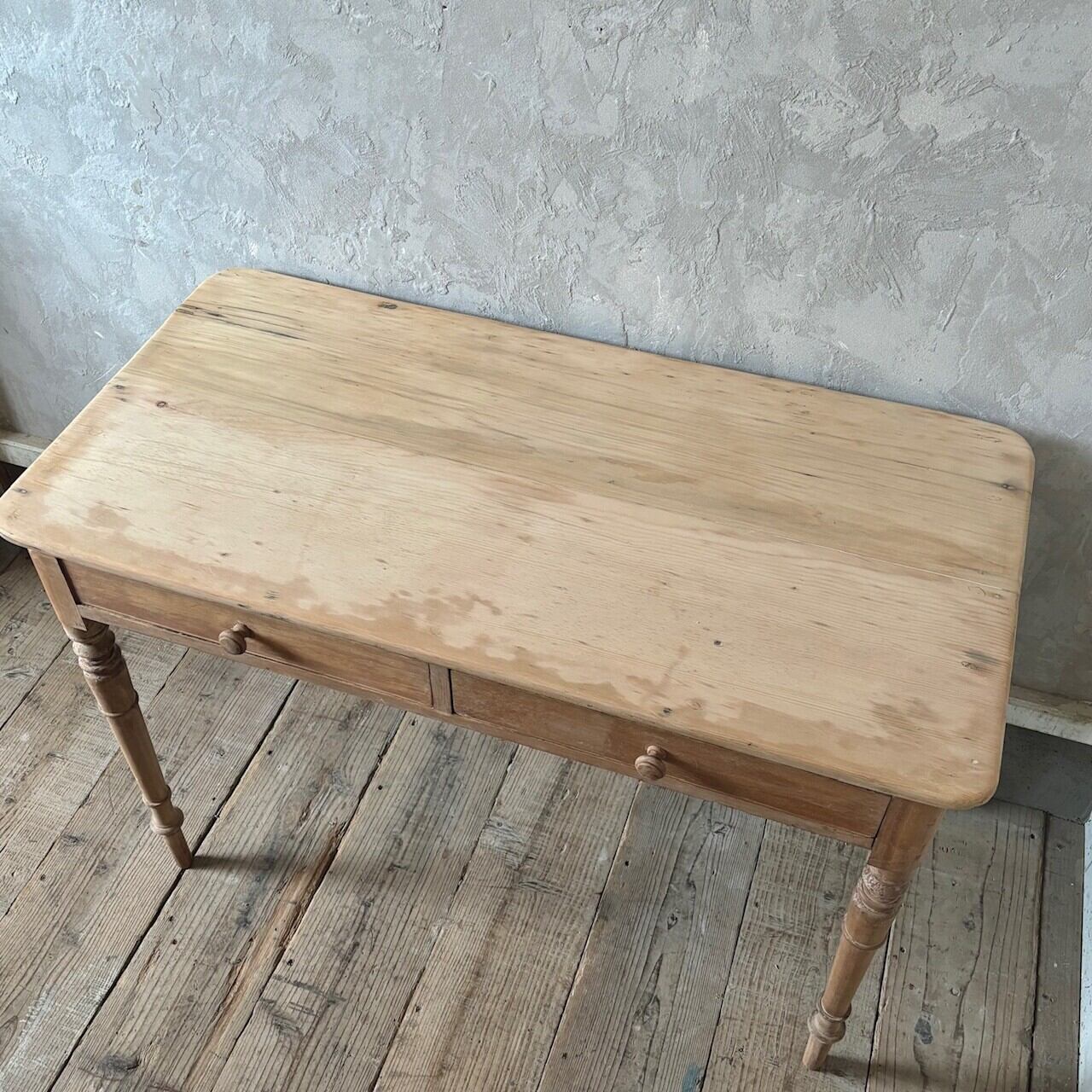 引出し付きのデスク。長い年月を経た味わい深い木の表情が良い雰囲気です。脚部分に補修跡や若干の反りがありますが実用できます。デスクとしてはもちろんテーブルとしてやディスプレイテーブルにも。高さ調整の脚のカットは可能です。