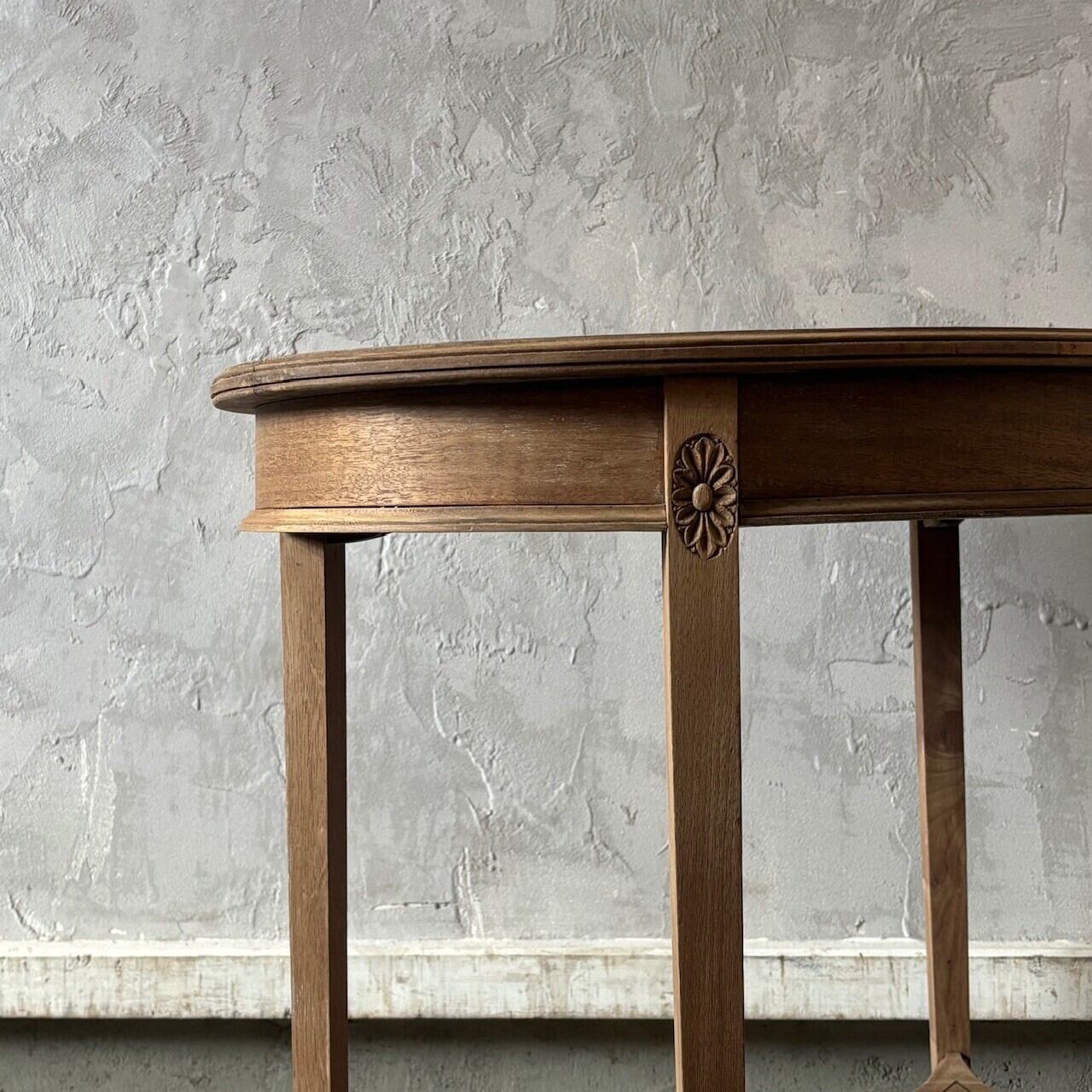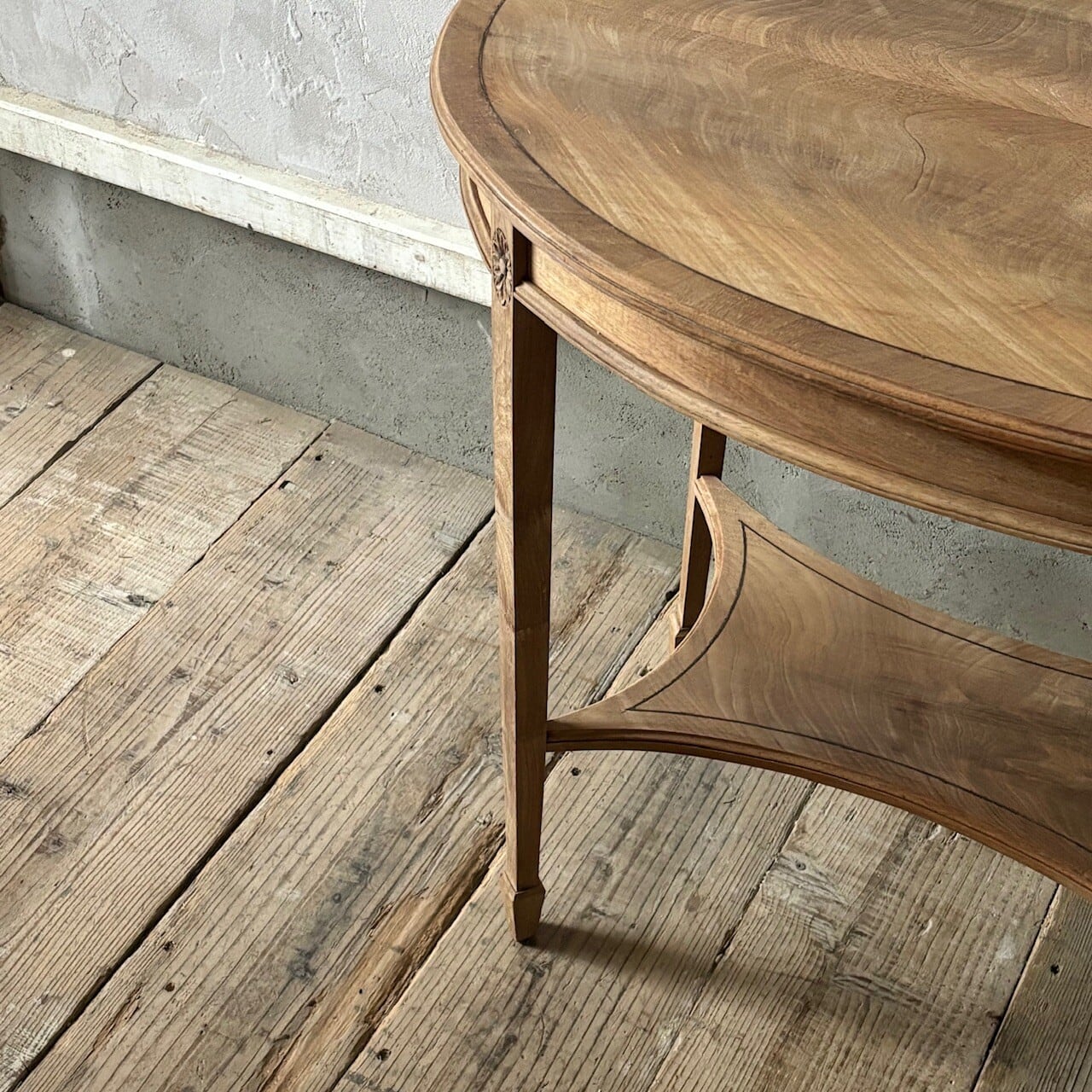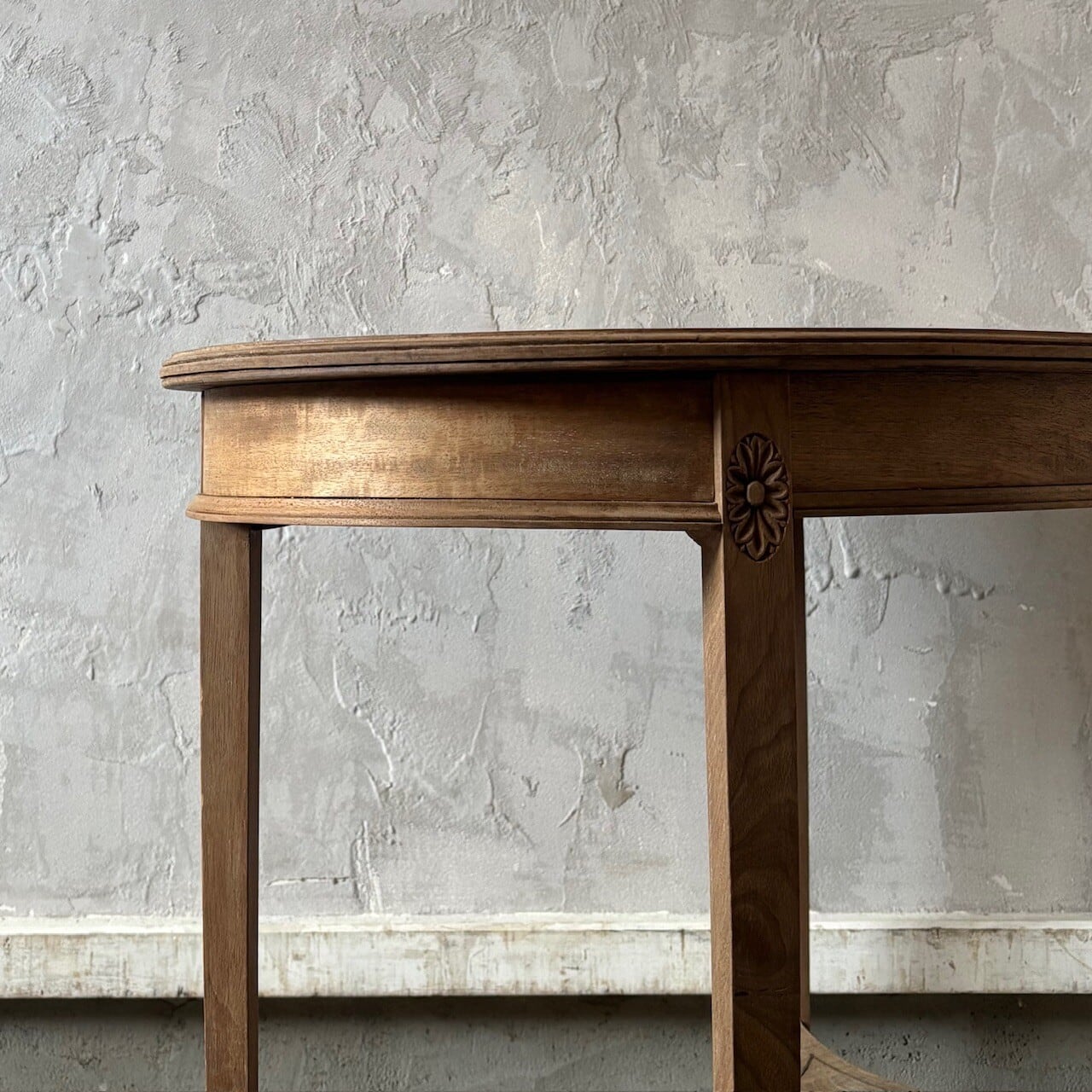オーバル形の天板のクラシカルな印象のサイドテーブル。天板の縁や脚部など所々に施された装飾が魅力的です。ちょっとしたテーブルとしてやディスプレイテーブルとしてなど様々な用途で使えそうです。