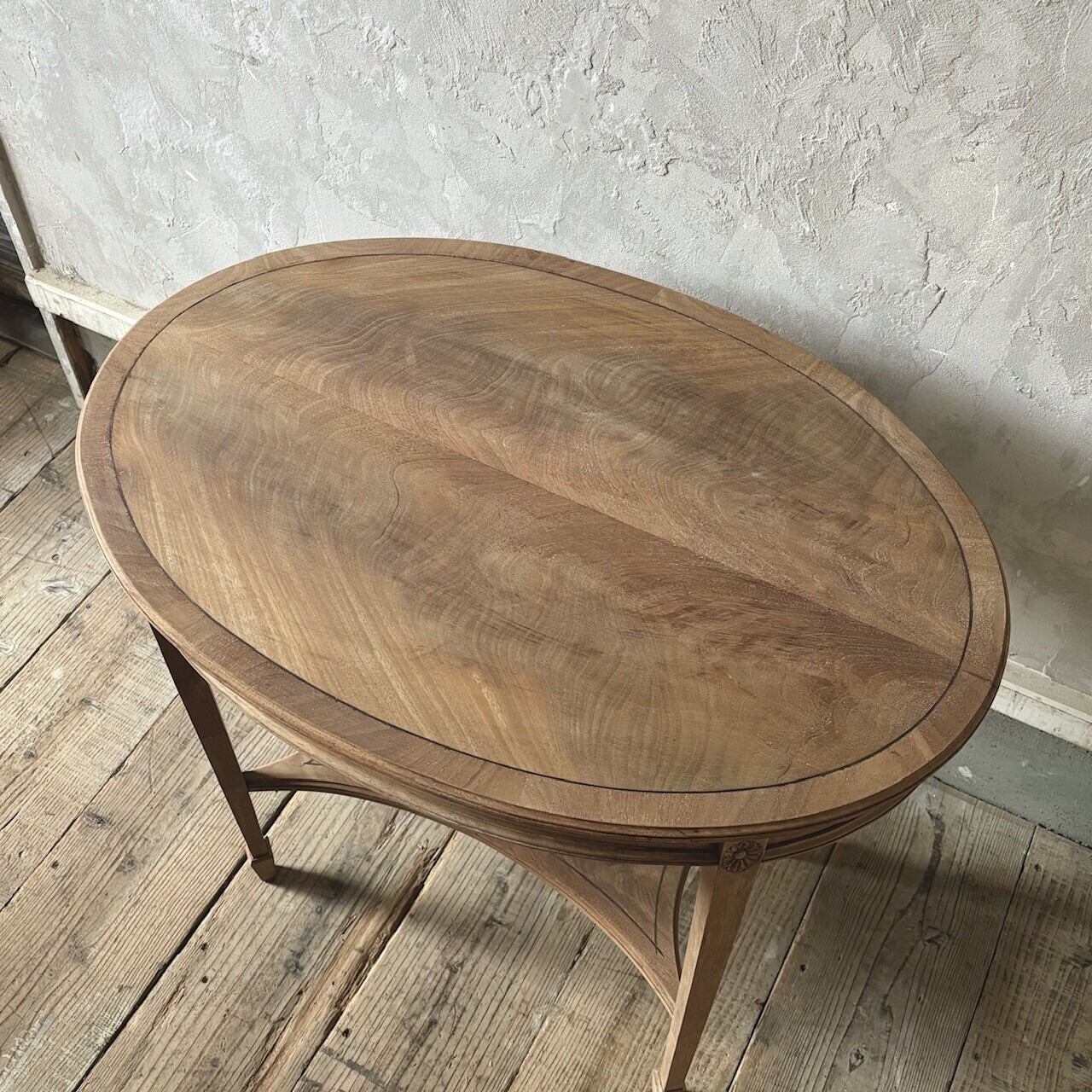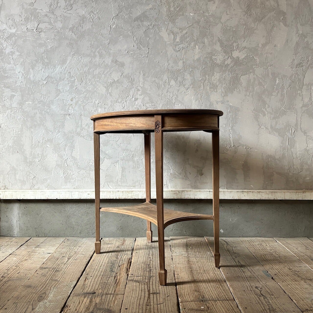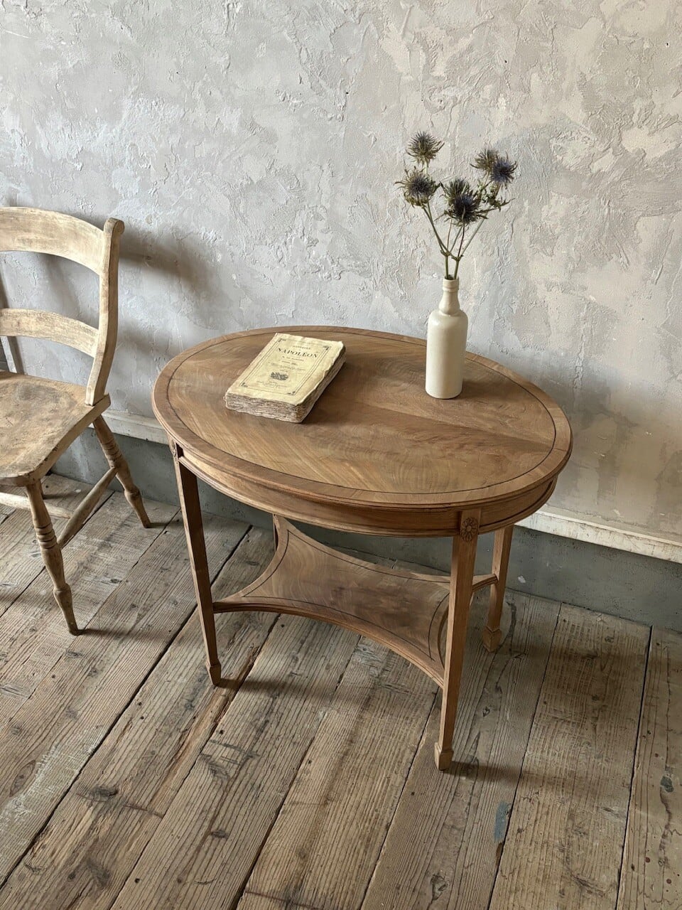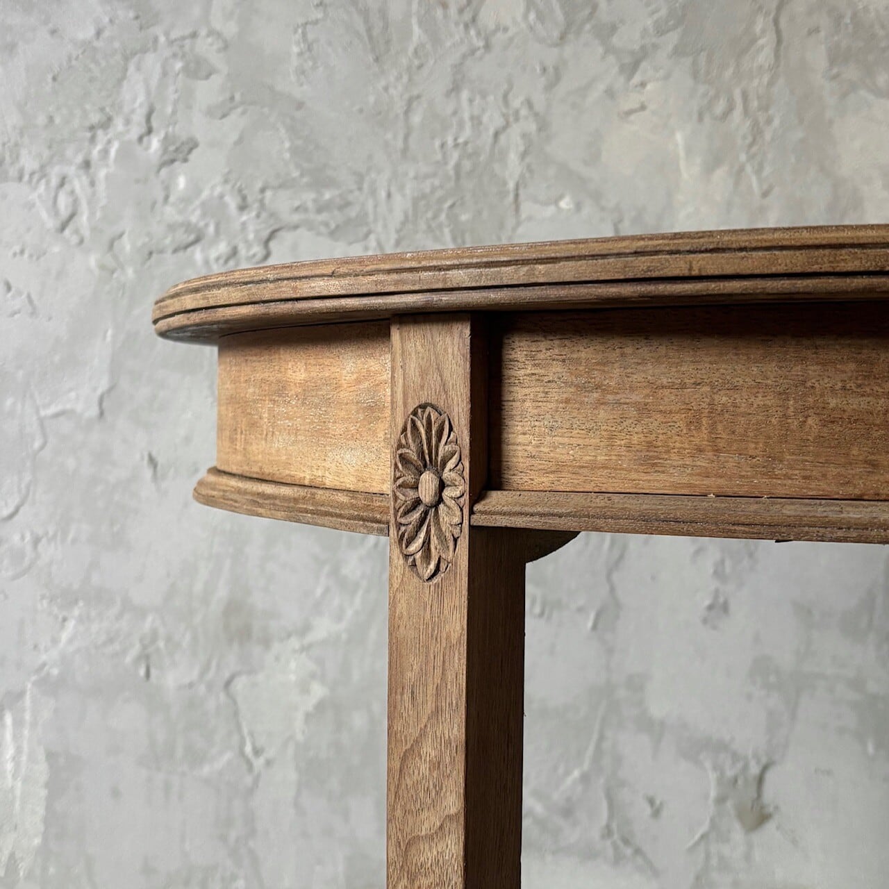 オーバル形の天板のクラシカルな印象のサイドテーブル。天板の縁や脚部など所々に施された装飾が魅力的です。ちょっとしたテーブルとしてやディスプレイテーブルとしてなど様々な用途で使えそうです。
