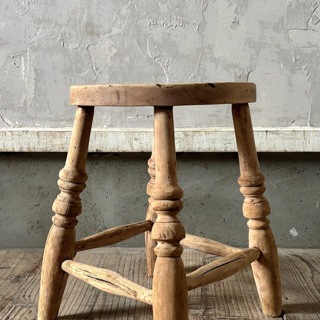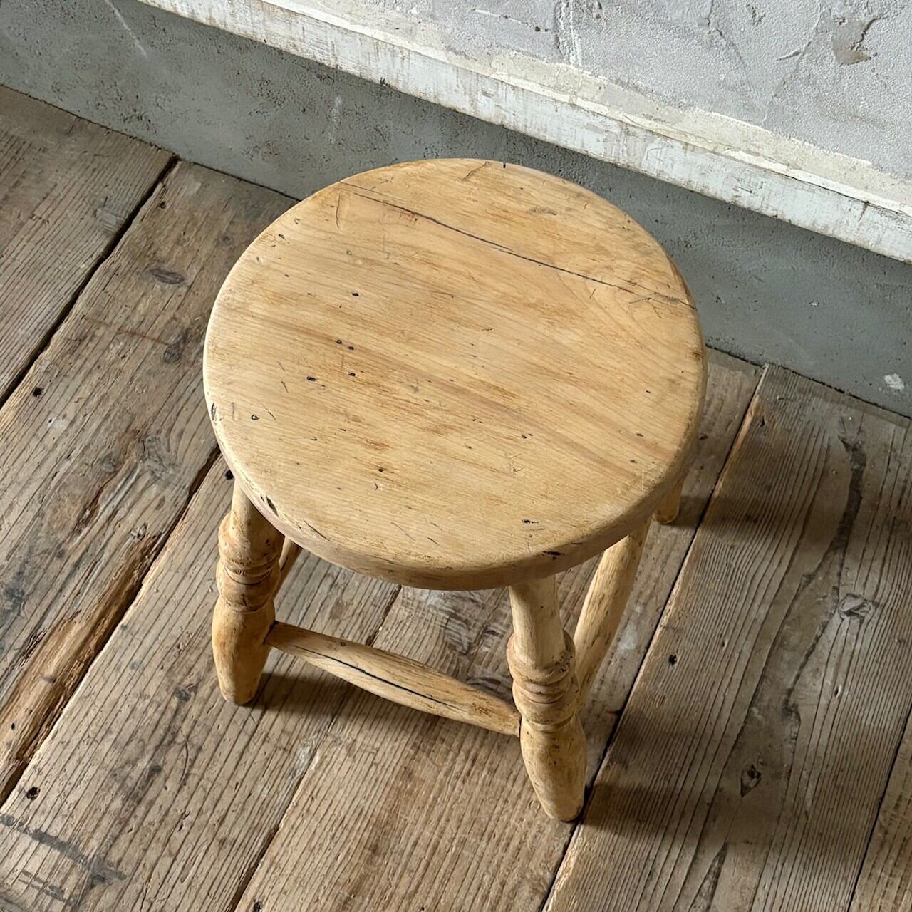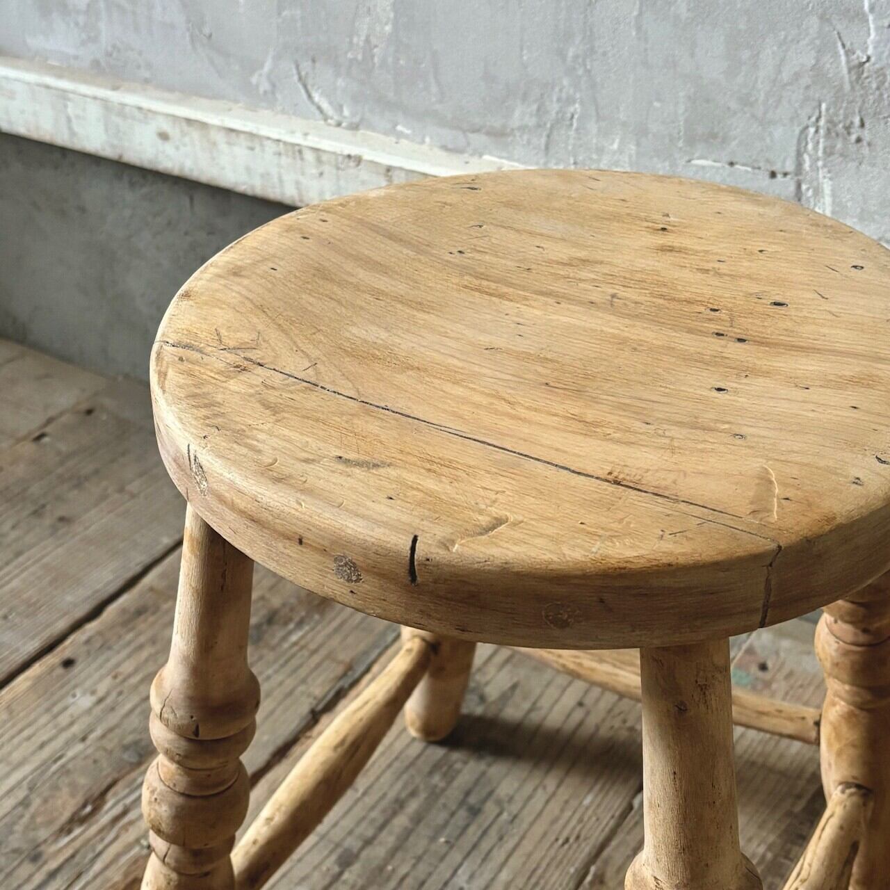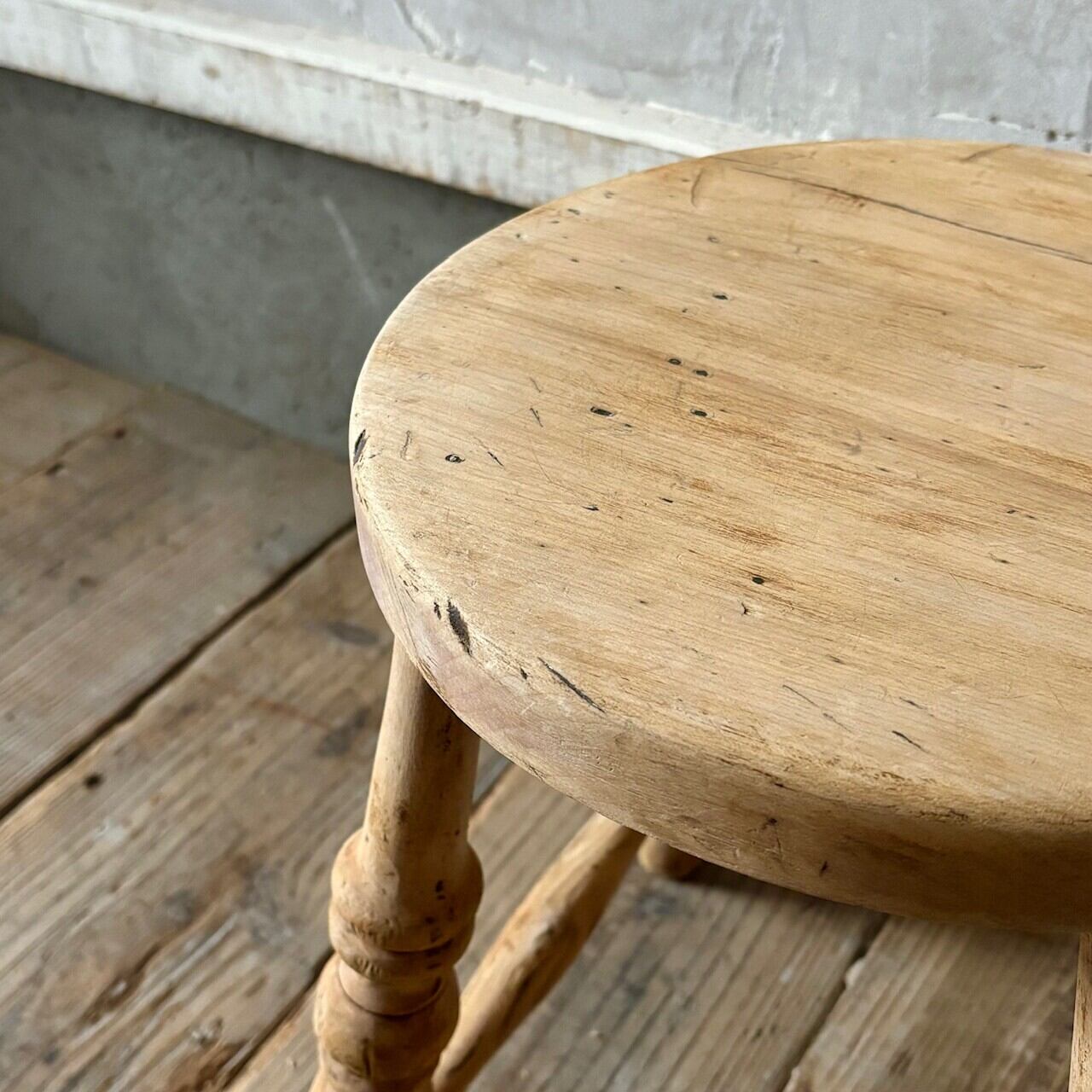 やや低めの素朴な印象のスツール。古いものならではの経年した味わい深い木の表情が良い雰囲気です。実用できるしっかりとしたつくりで、玄関などでの腰掛けとしてや鉢置きとしてなど様々な用途で使えそうです。