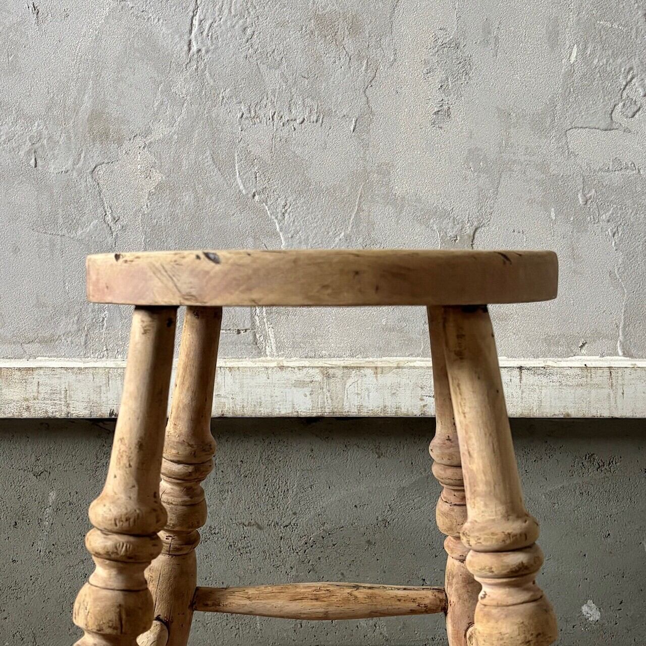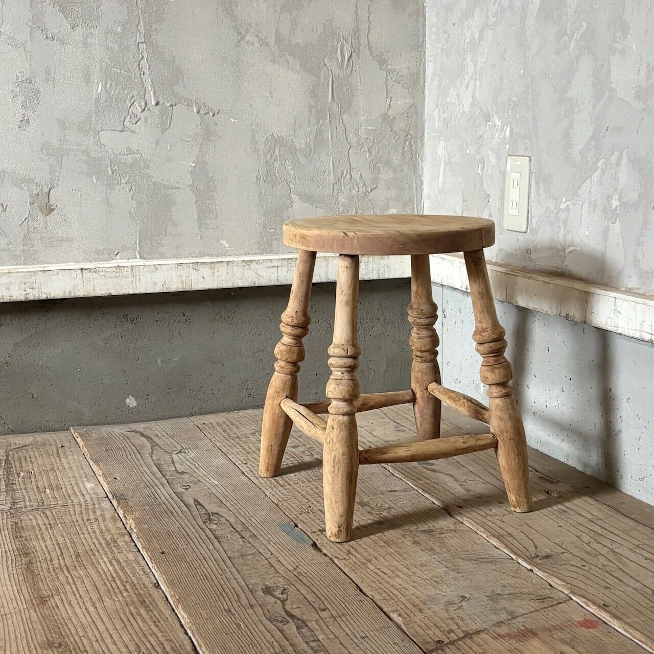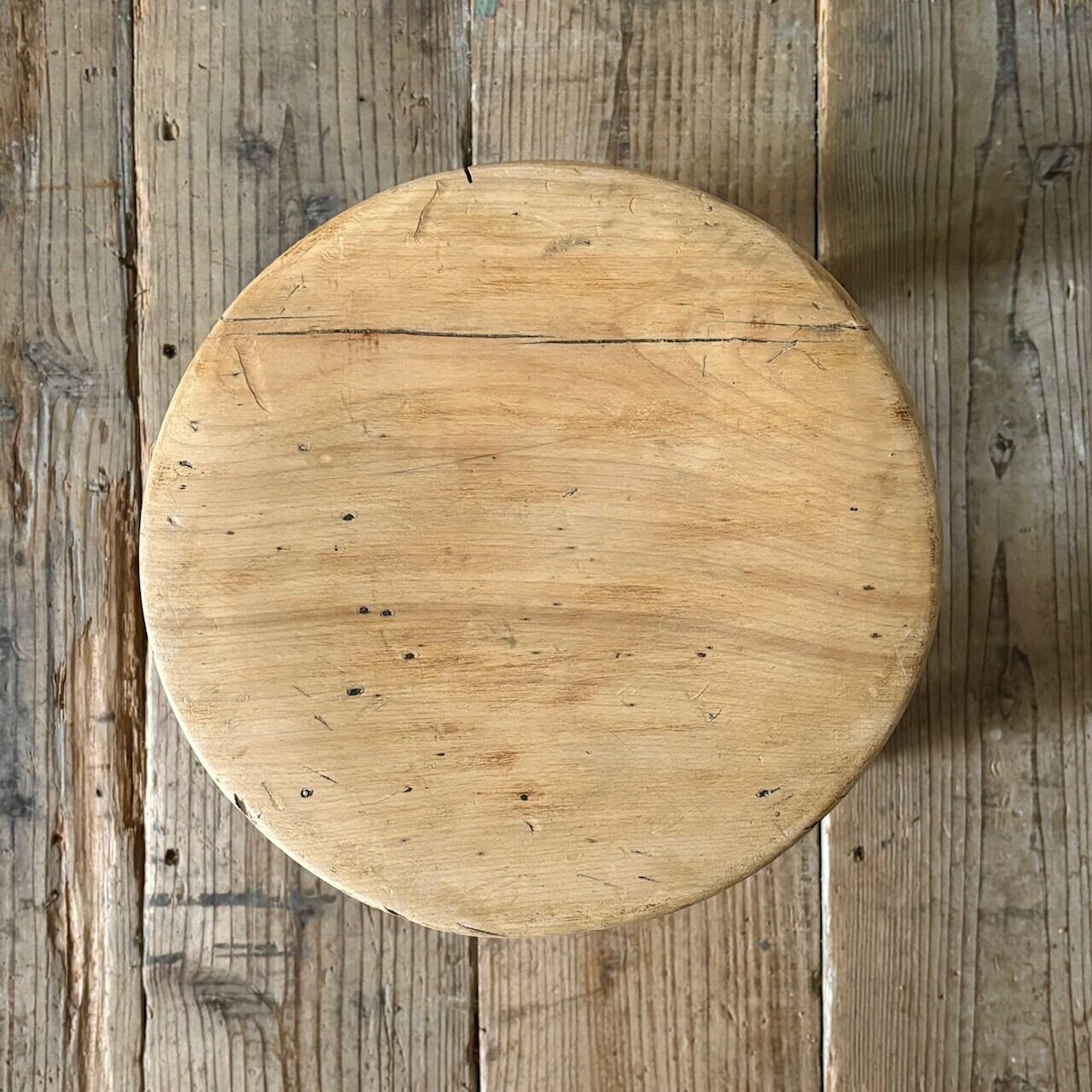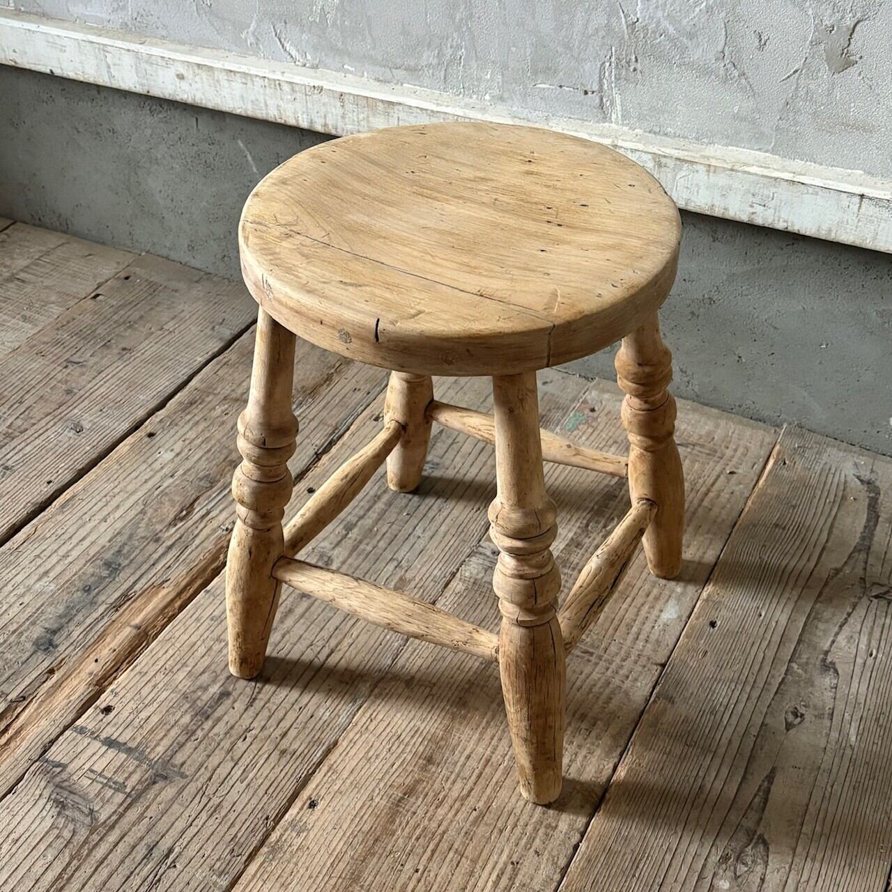 やや低めの素朴な印象のスツール。古いものならではの経年した味わい深い木の表情が良い雰囲気です。実用できるしっかりとしたつくりで、玄関などでの腰掛けとしてや鉢置きとしてなど様々な用途で使えそうです。