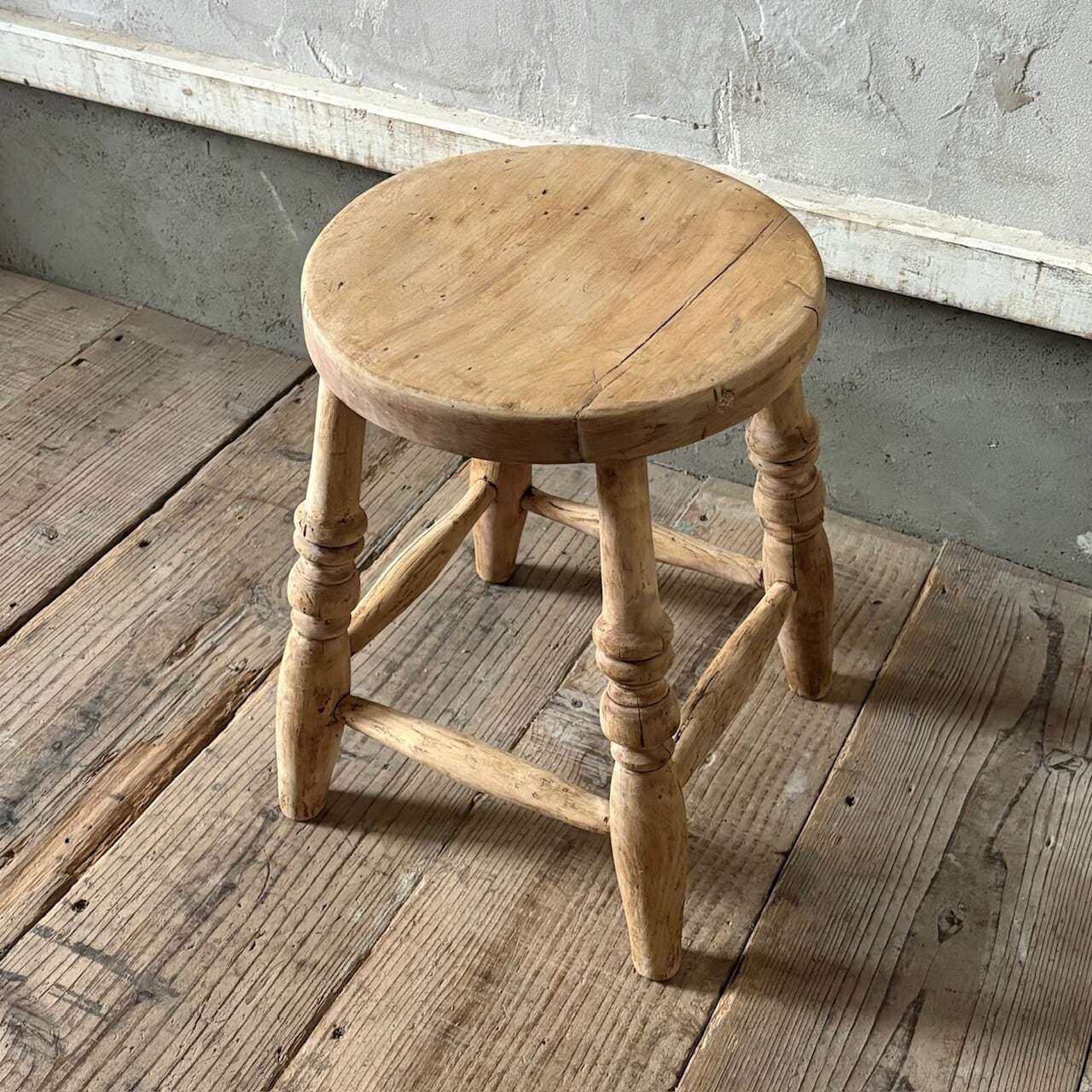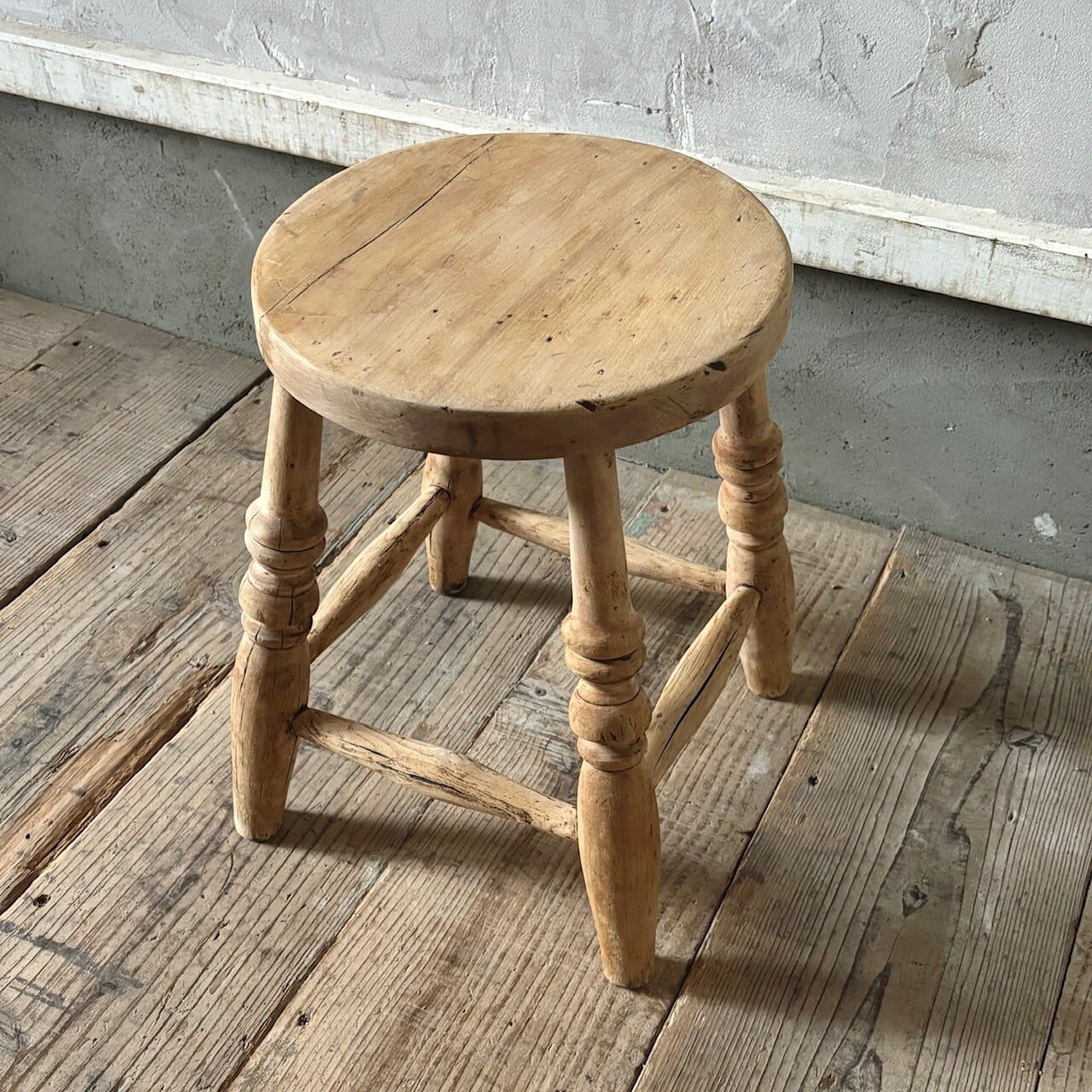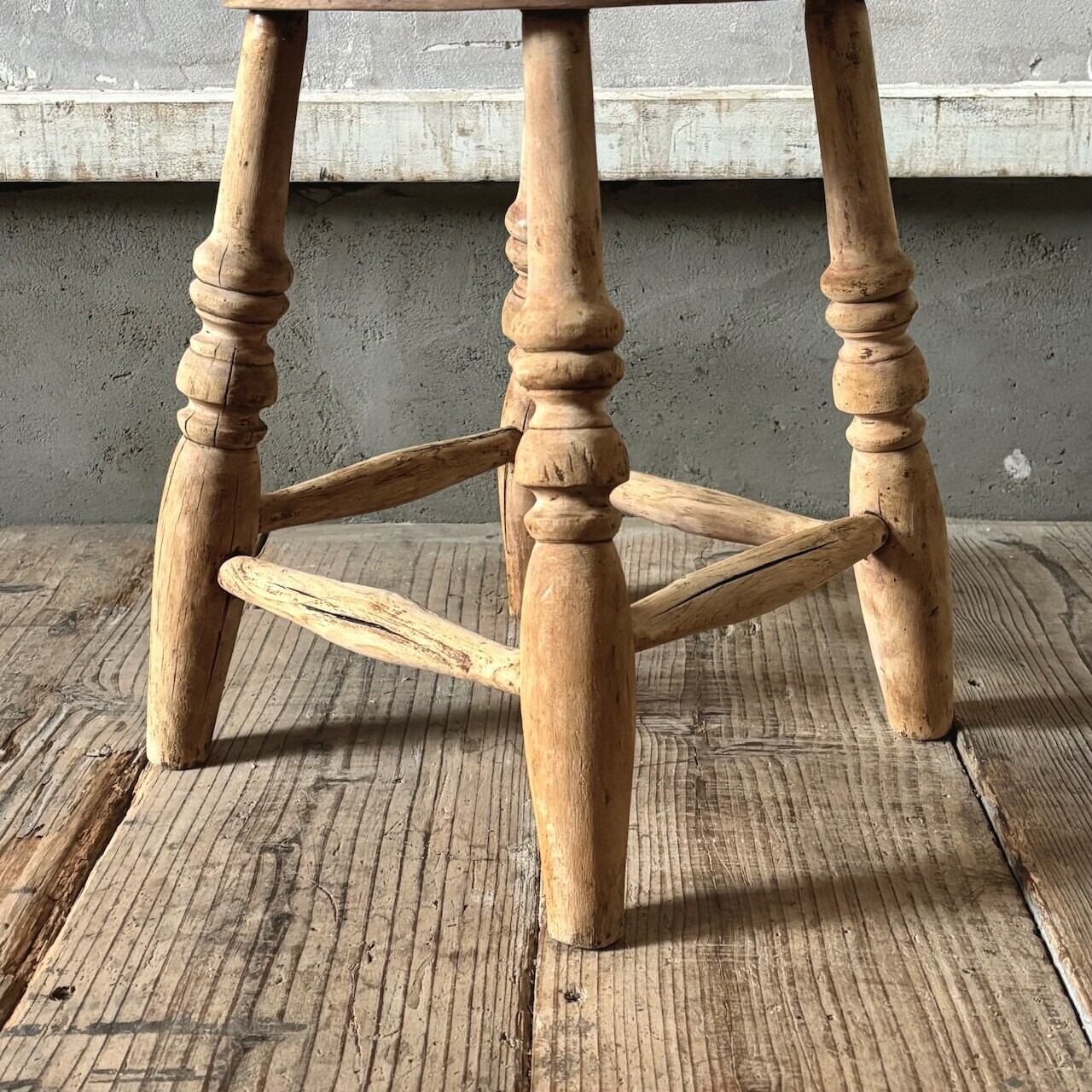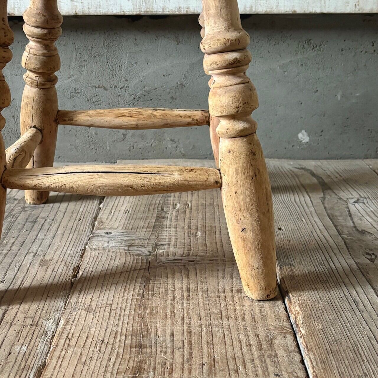 やや低めの素朴な印象のスツール。古いものならではの経年した味わい深い木の表情が良い雰囲気です。実用できるしっかりとしたつくりで、玄関などでの腰掛けとしてや鉢置きとしてなど様々な用途で使えそうです。