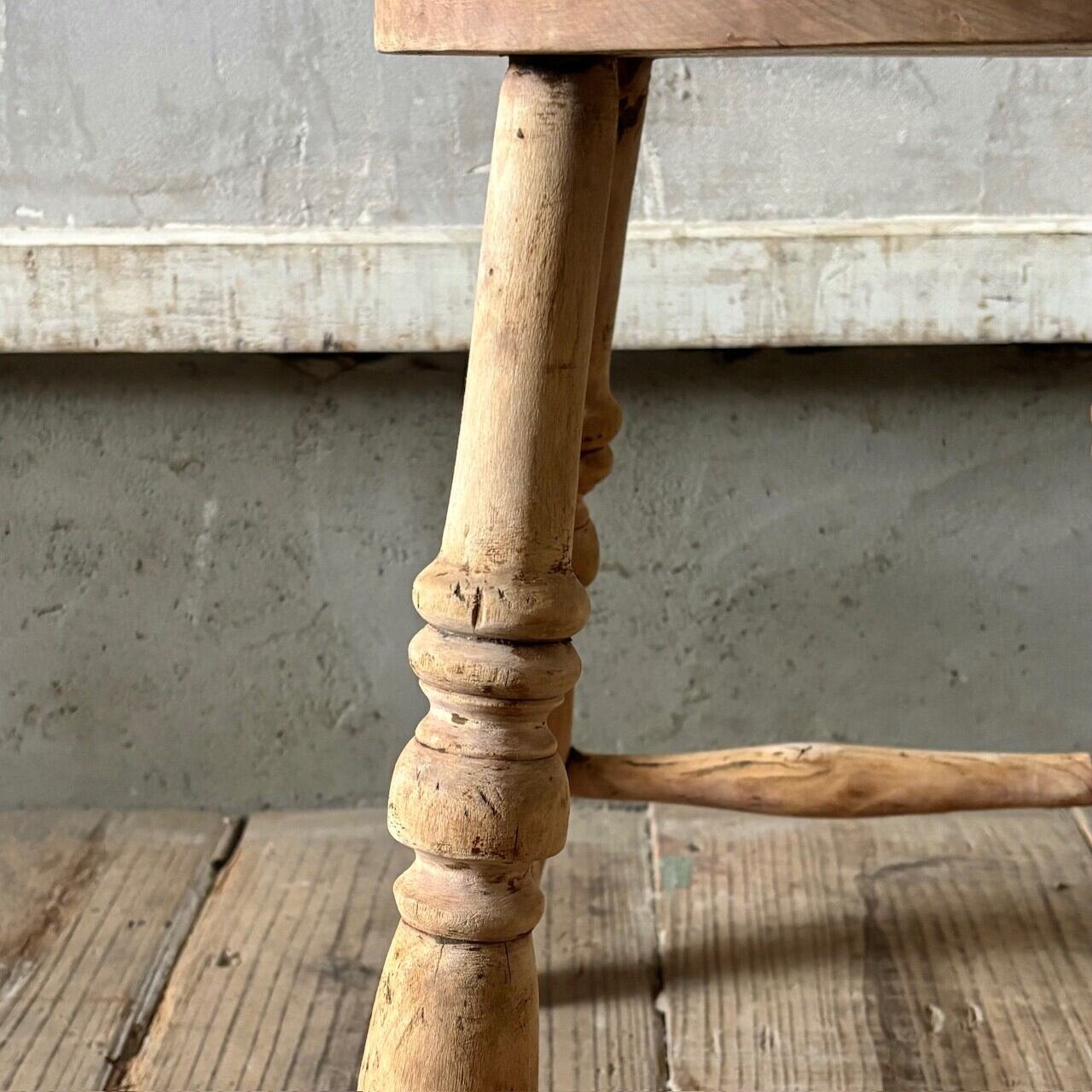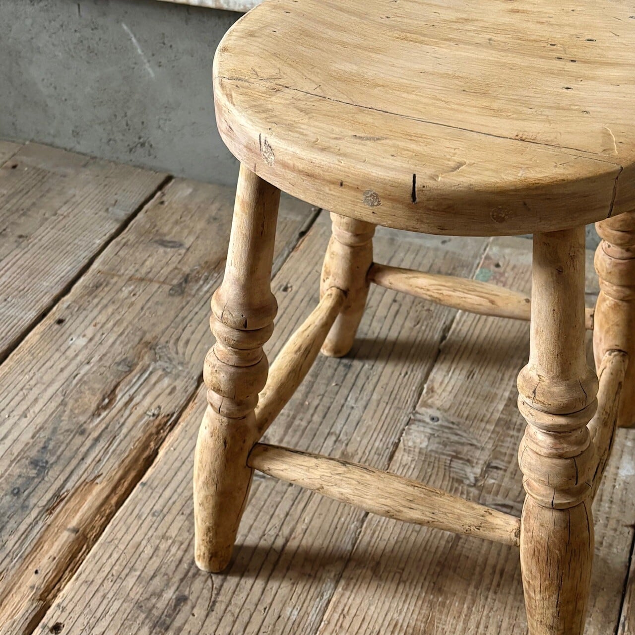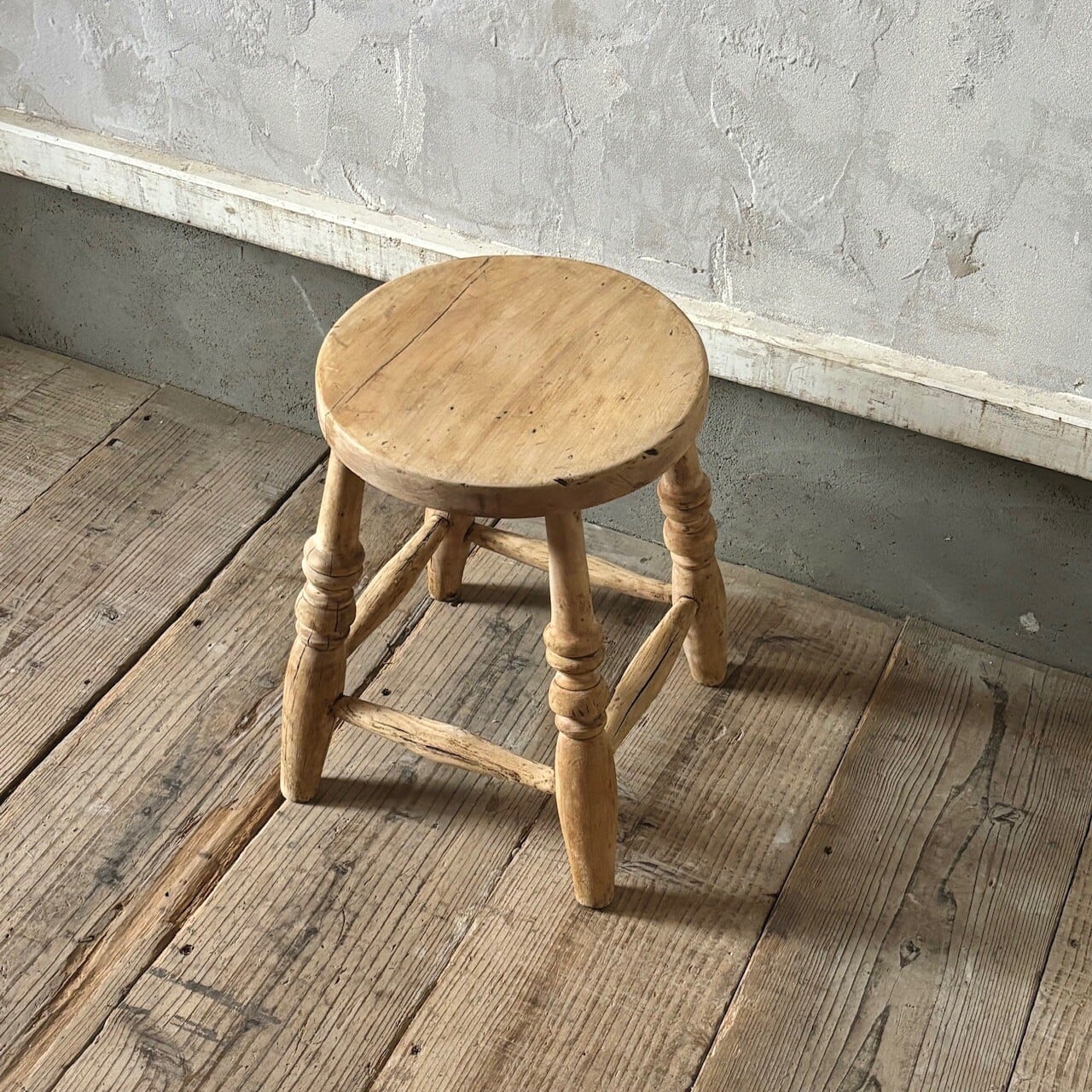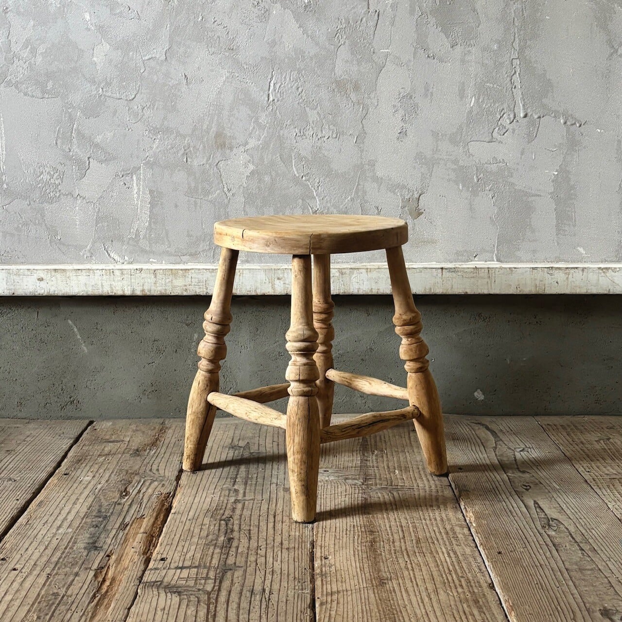 やや低めの素朴な印象のスツール。古いものならではの経年した味わい深い木の表情が良い雰囲気です。実用できるしっかりとしたつくりで、玄関などでの腰掛けとしてや鉢置きとしてなど様々な用途で使えそうです。