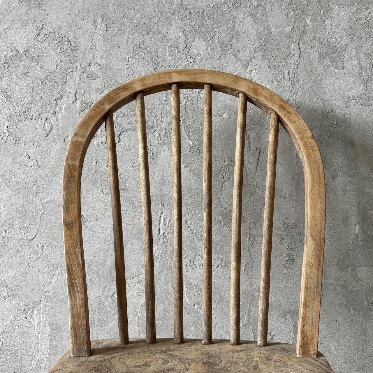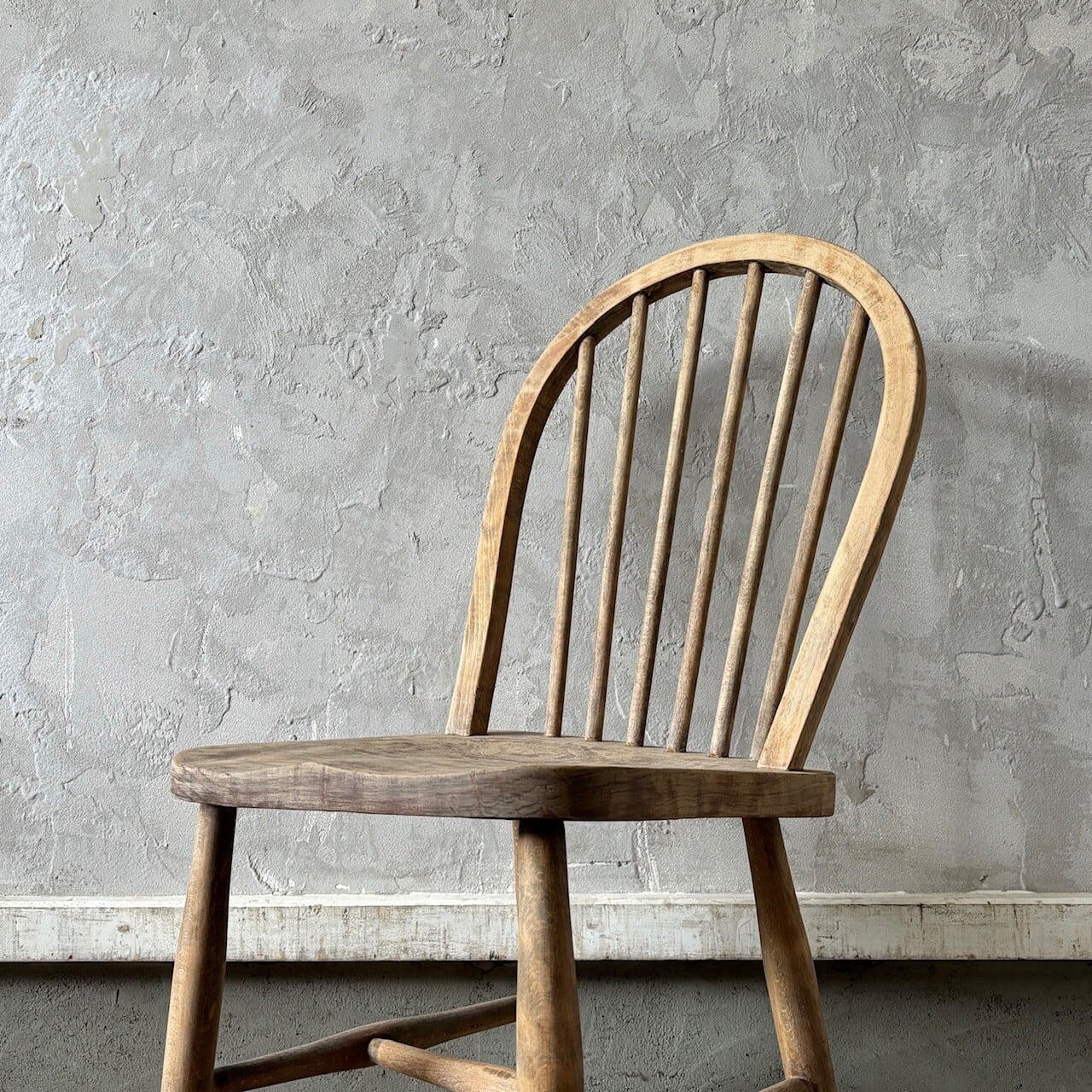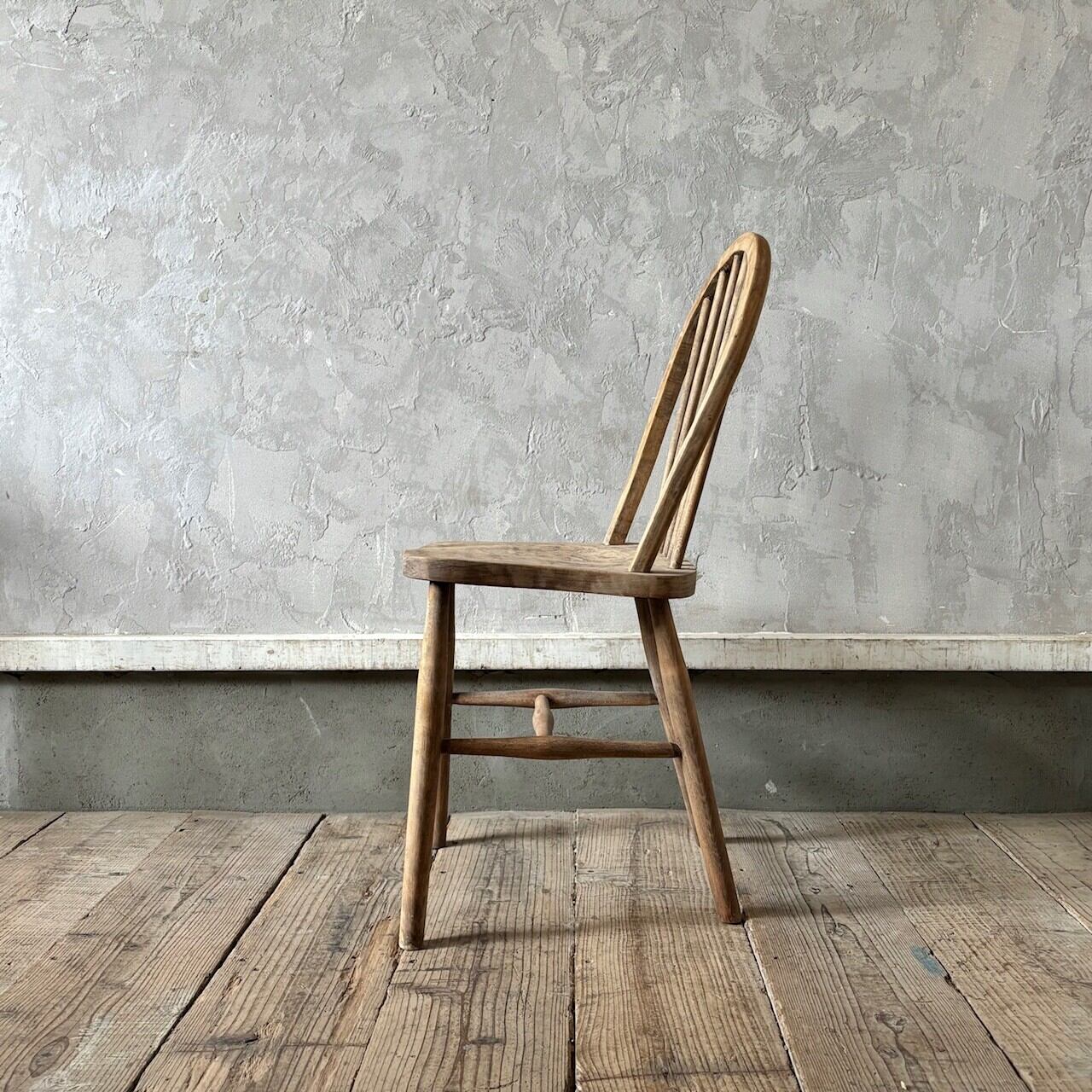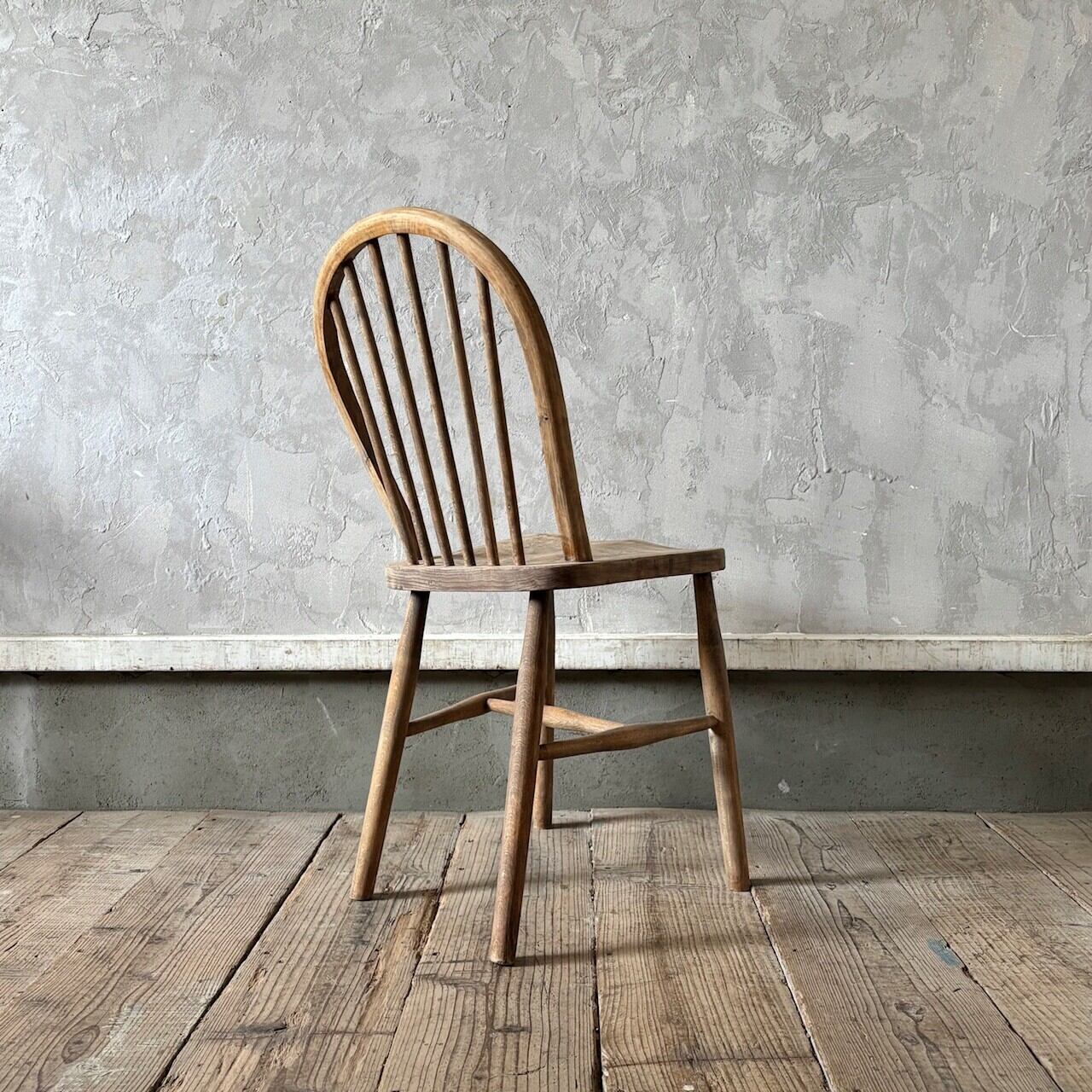 薄い色合いと背もたれの曲線が柔らかな印象のボウバックチェア。経年した木の表情や使い込まれてついた傷や色むらなど味わいのある表情が魅力的です。高さ調整の脚のカットは可能です。