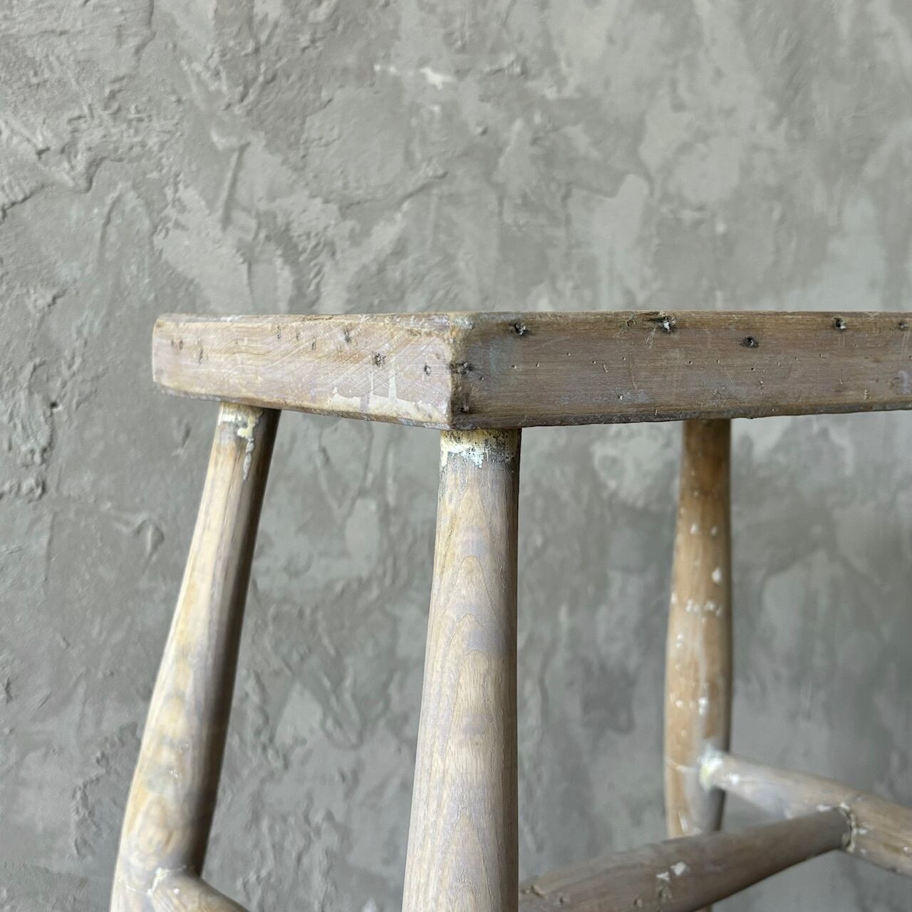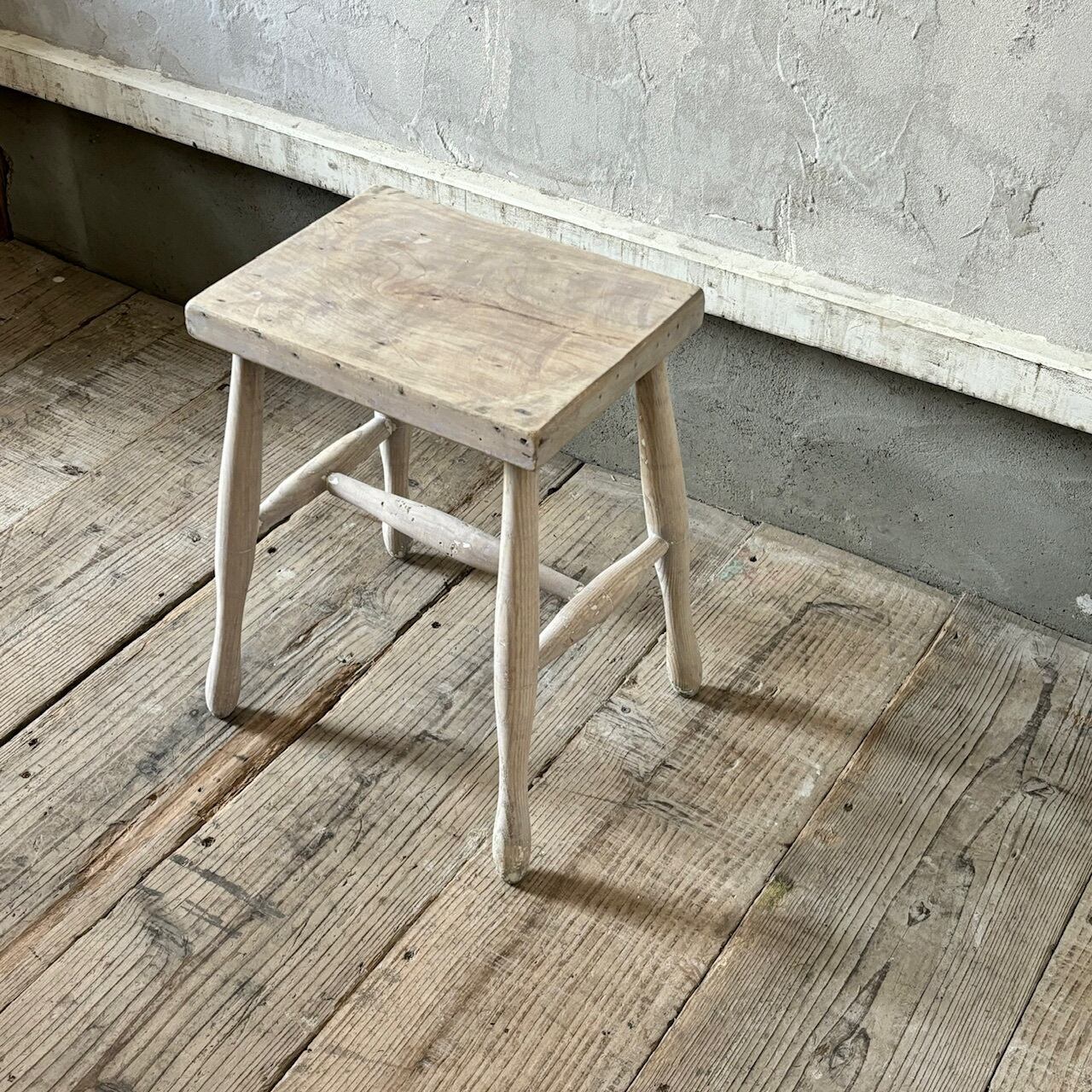 やや低めのスツール。ペイントが少し残る木の表情や経年で歪んだ形や傷なども良い雰囲気です。実用できるしっかりとしたつくりで、玄関でのちょっとした腰掛けとしてや鉢置きとしてなど様々な用途で使えそうです。
