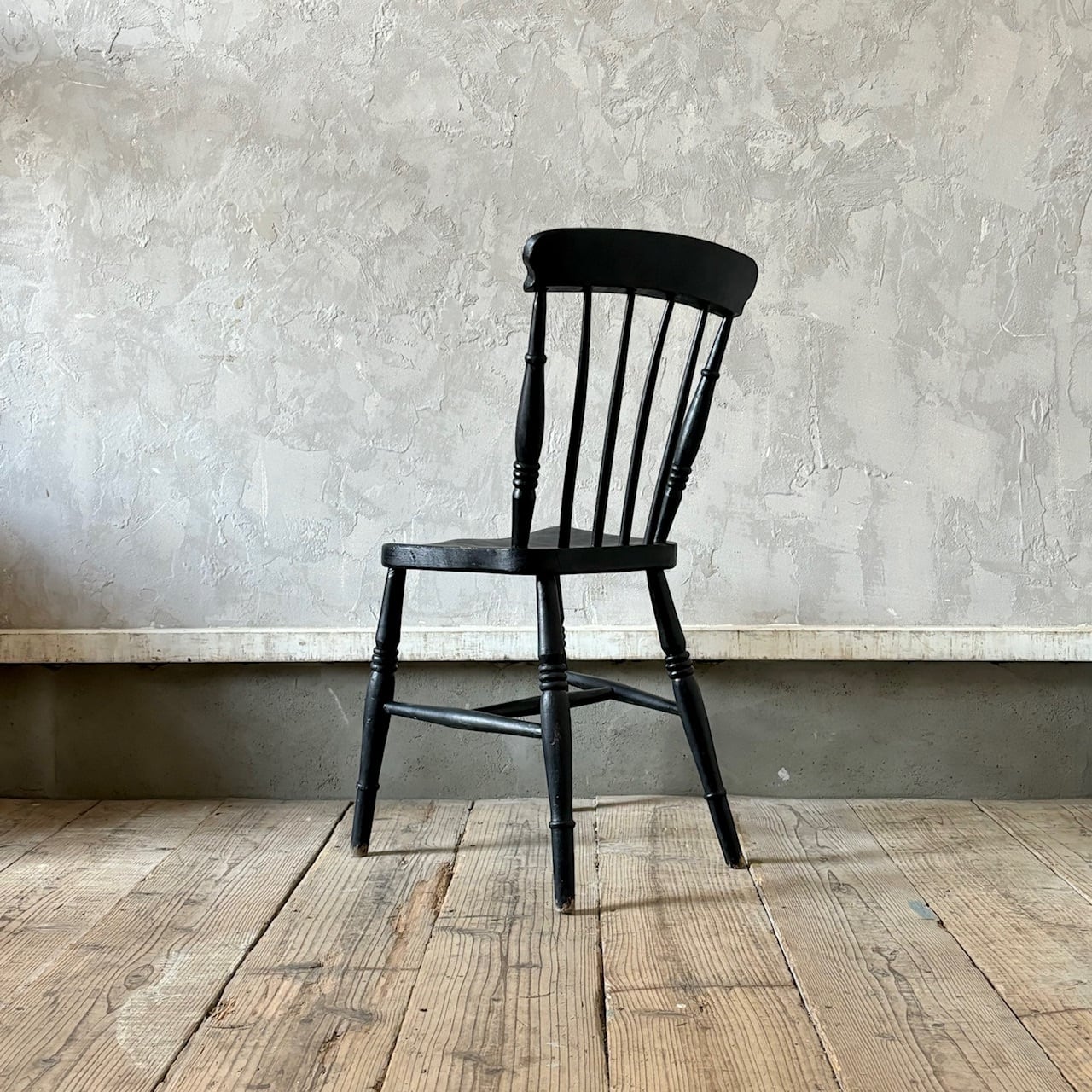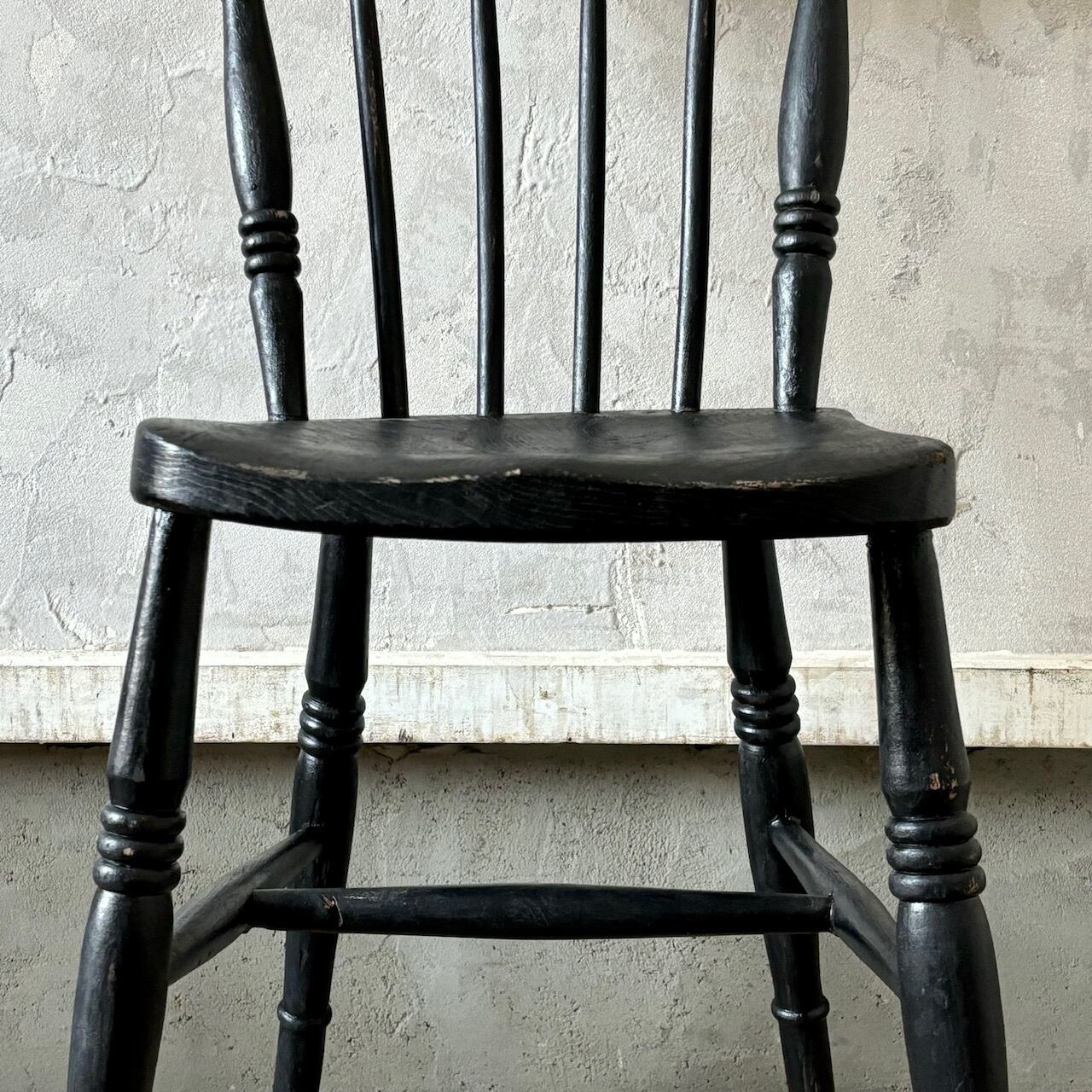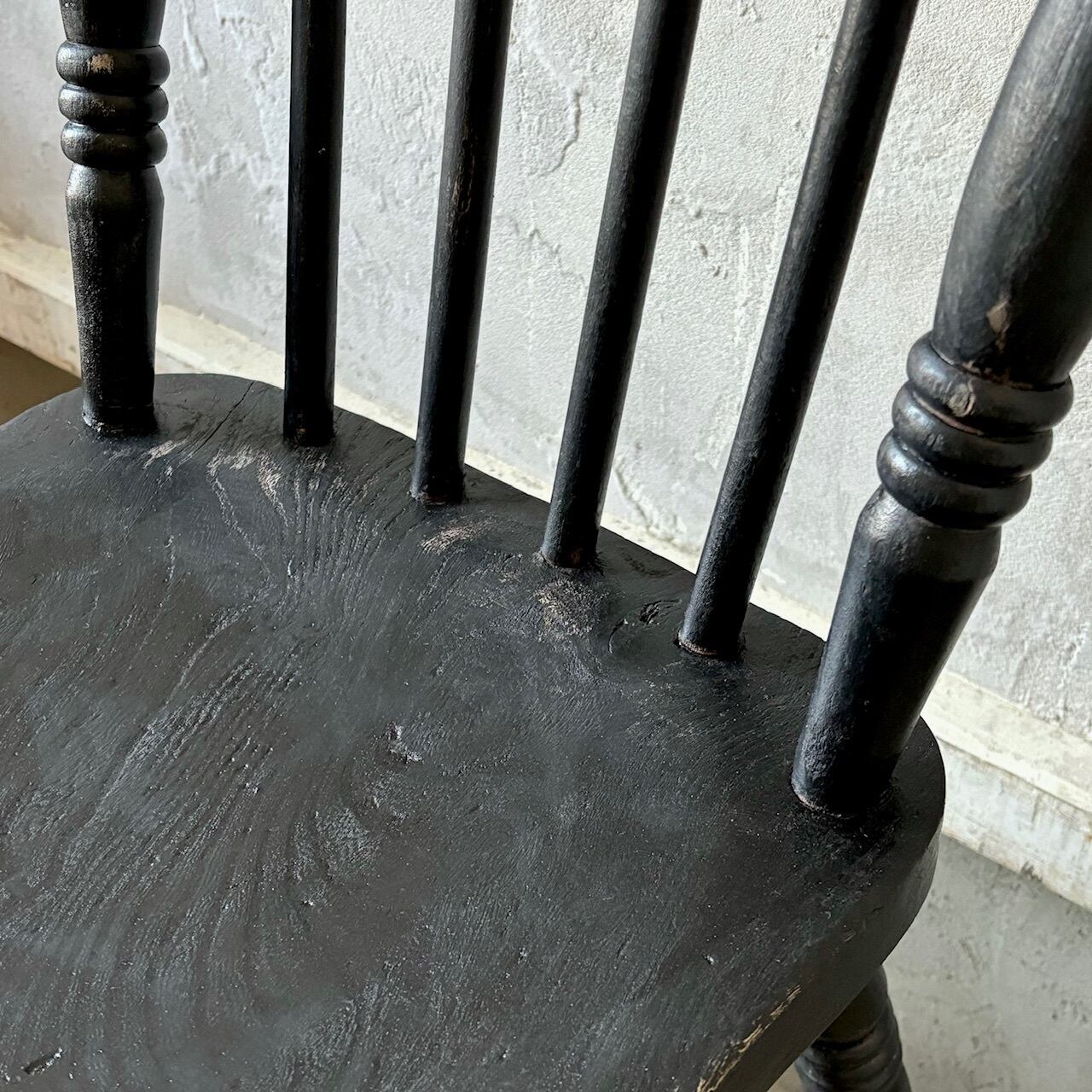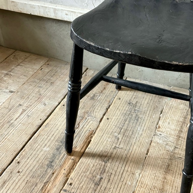 クラシカルなデザインのチェア。ペイントの表情、使い込まれてついた傷や経年で歪んだ形など古いものならではの味わいが魅力的です。しっかりとしたつくりで、お尻の形に合わせてくぼませた座面が良い座り心地です。高さ調整の脚のカットは可能です。